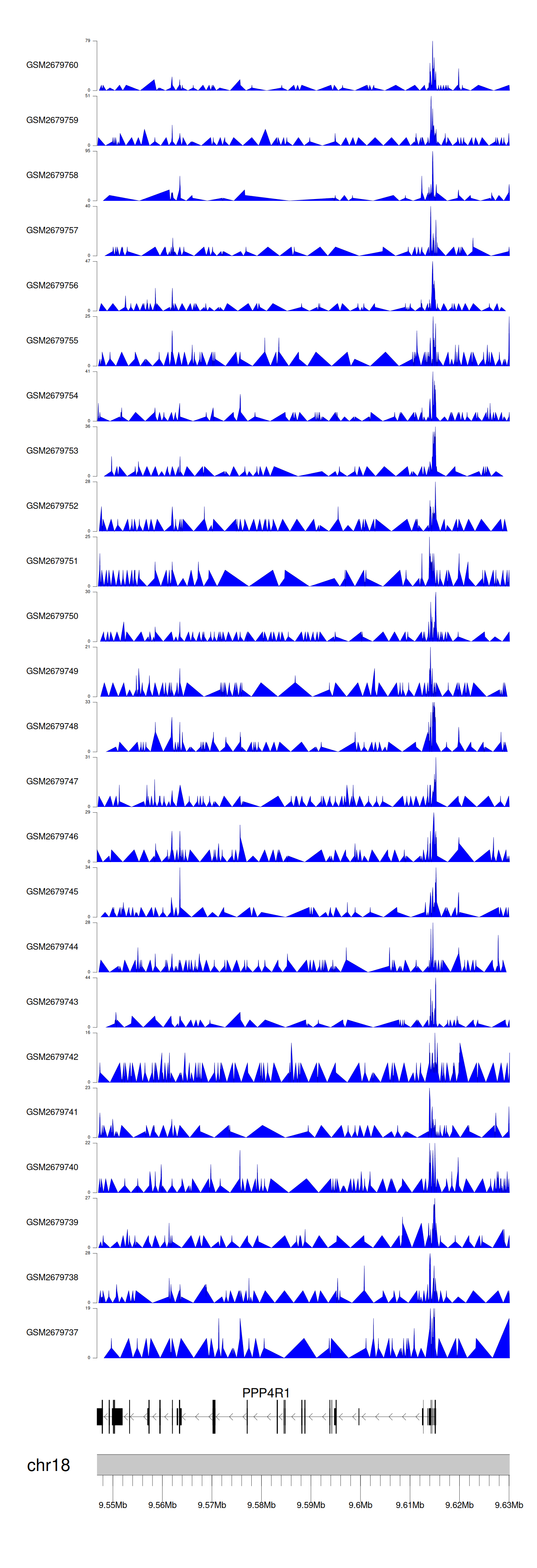 > Dataset: GSE100376 - PPP4R1 peak across samples
