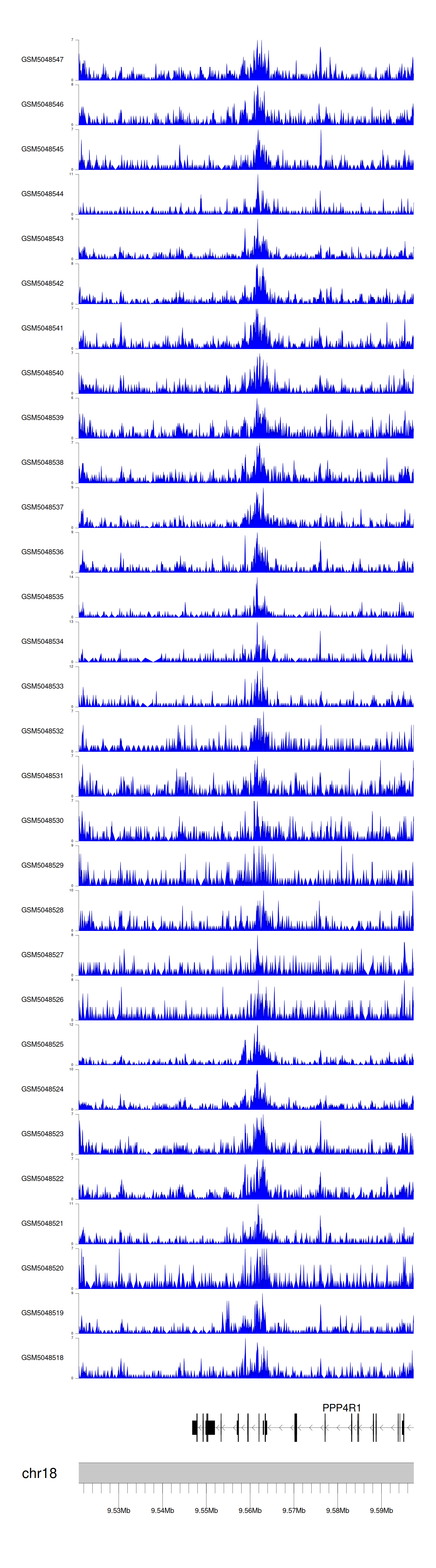 > Dataset: GSE30738 - PPP4R1 peak across samples
