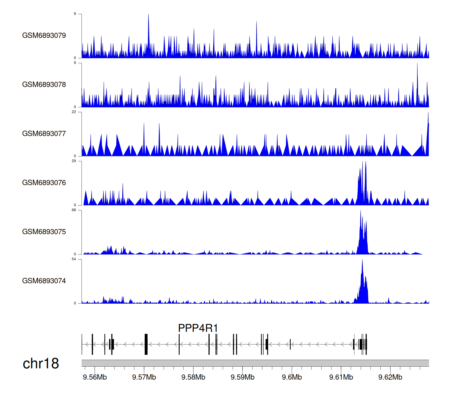 > Dataset: GSE220859 - PPP4R1 peak across samples
