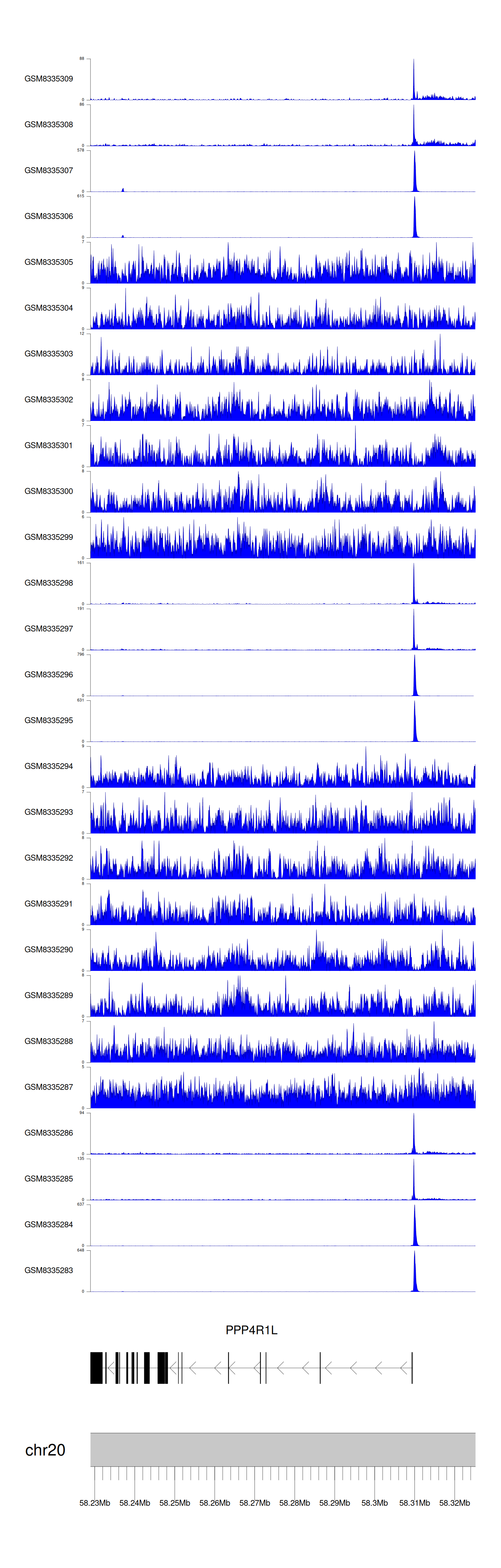 > Dataset: GSE270130 - PPP4R1L peak across samples