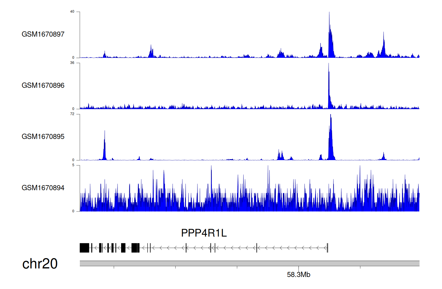 > Dataset: GSE68402 - PPP4R1L peak across samples