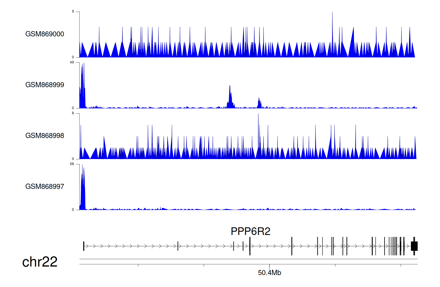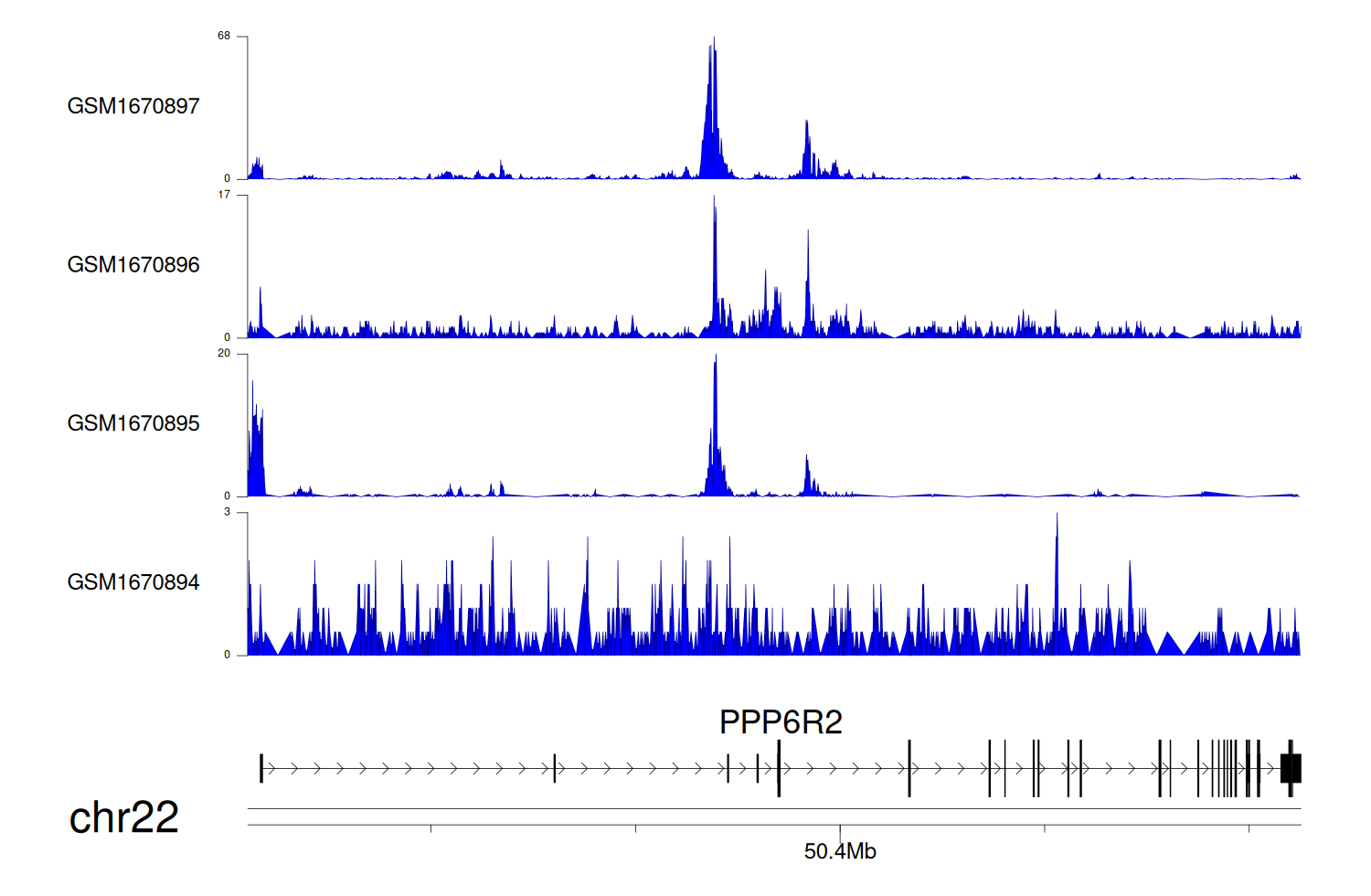 > Dataset: GSE68402 - PPP6R2 peak across samples