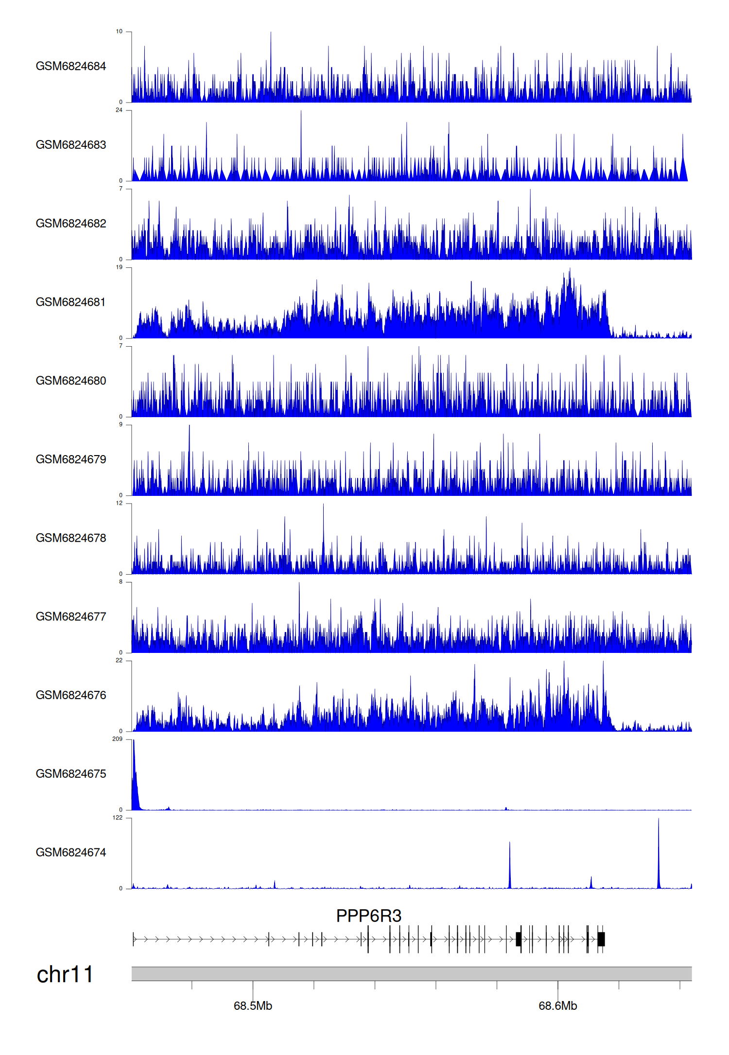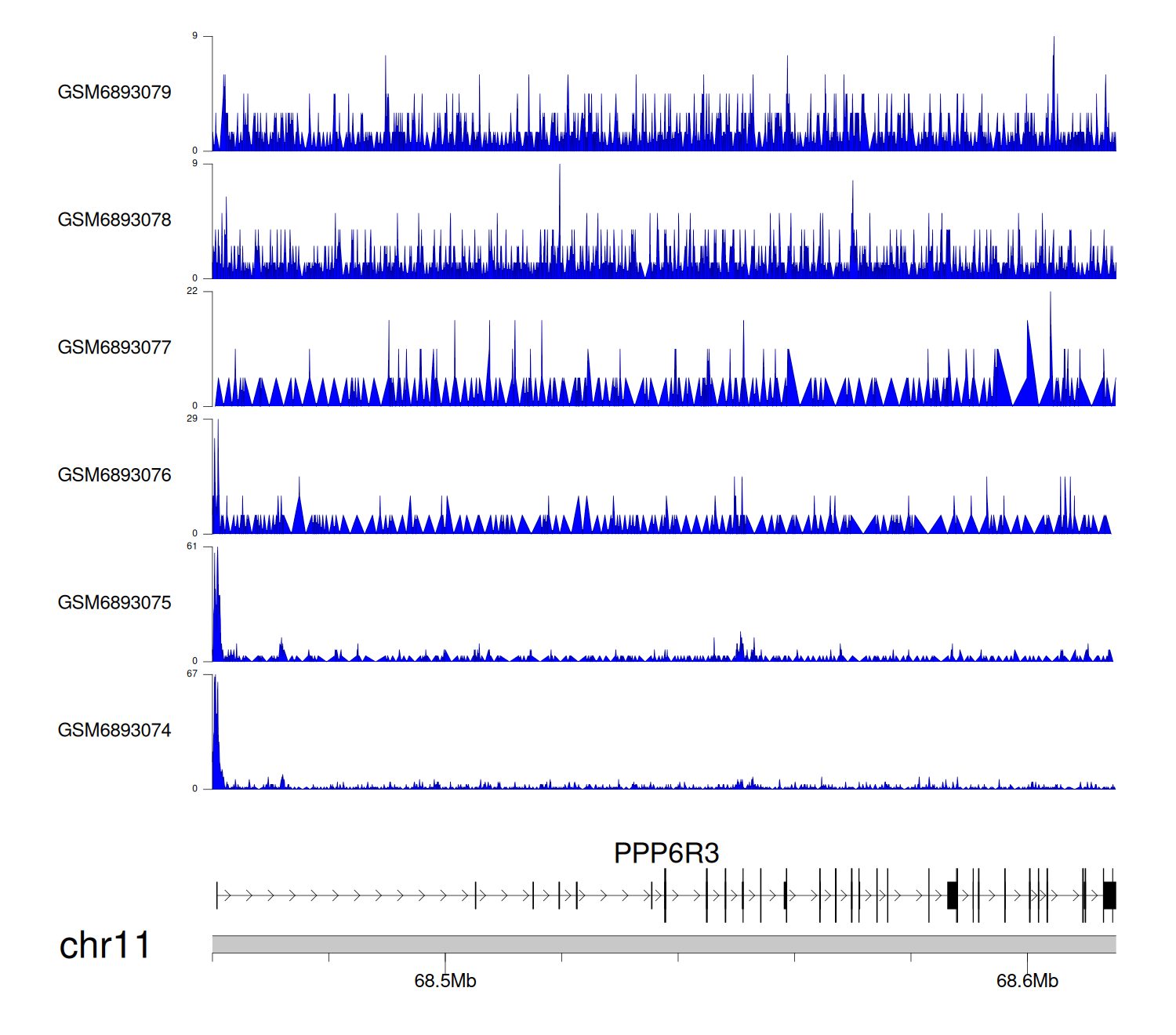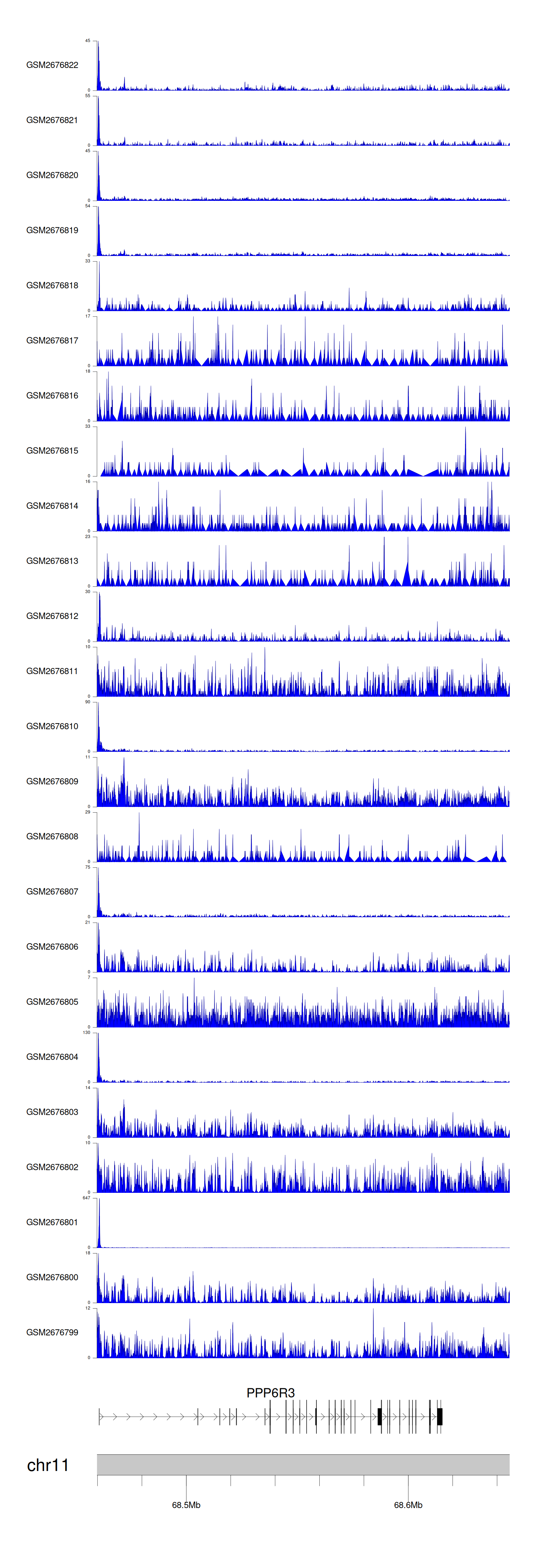 > Dataset: GSE211651 - PPP6R3 peak across samples