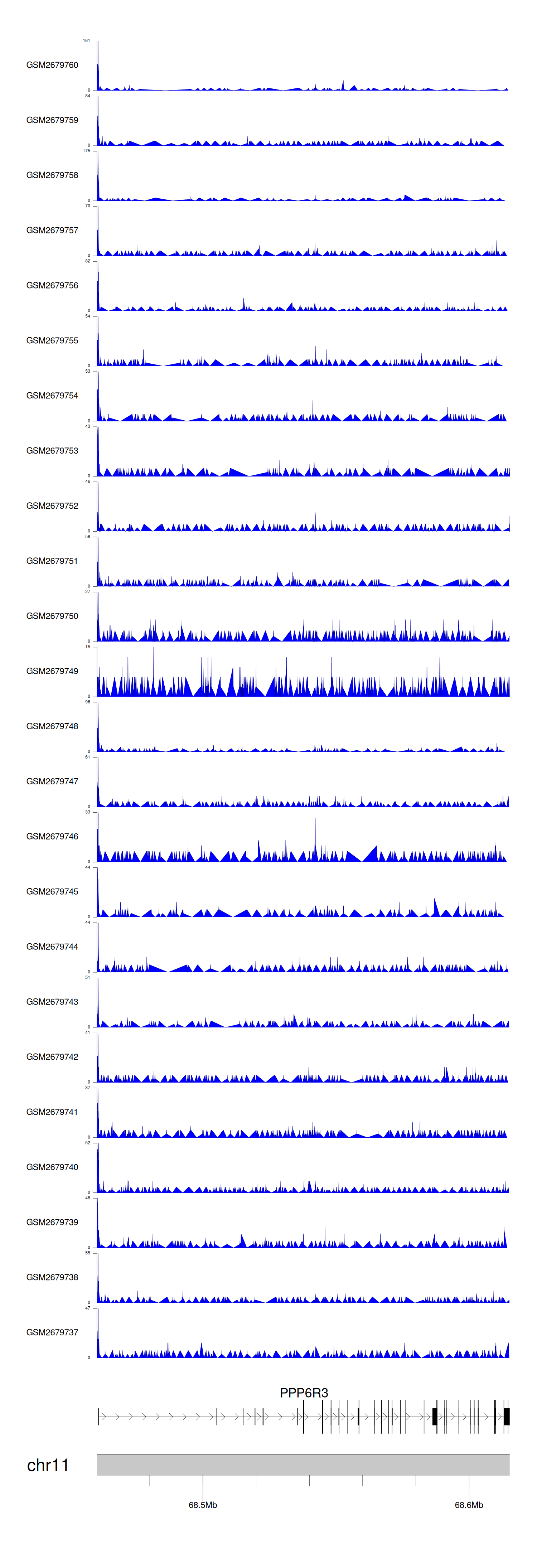 > Dataset: GSE165703 - PPP6R3 peak across samples