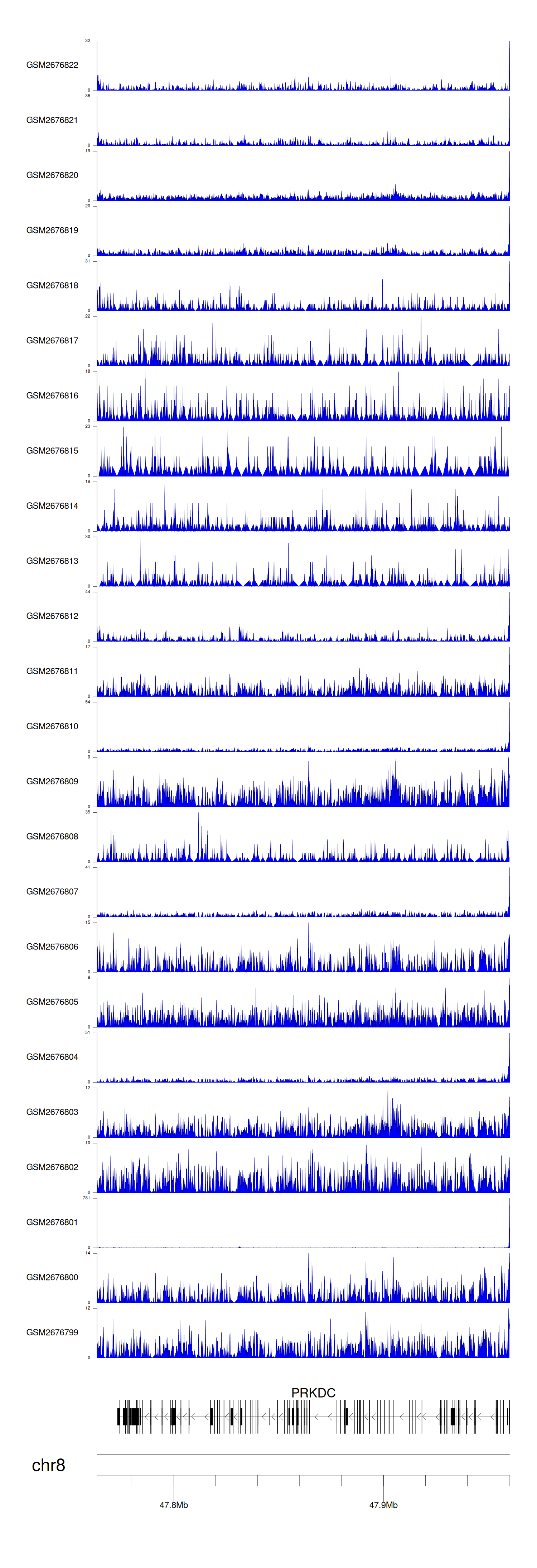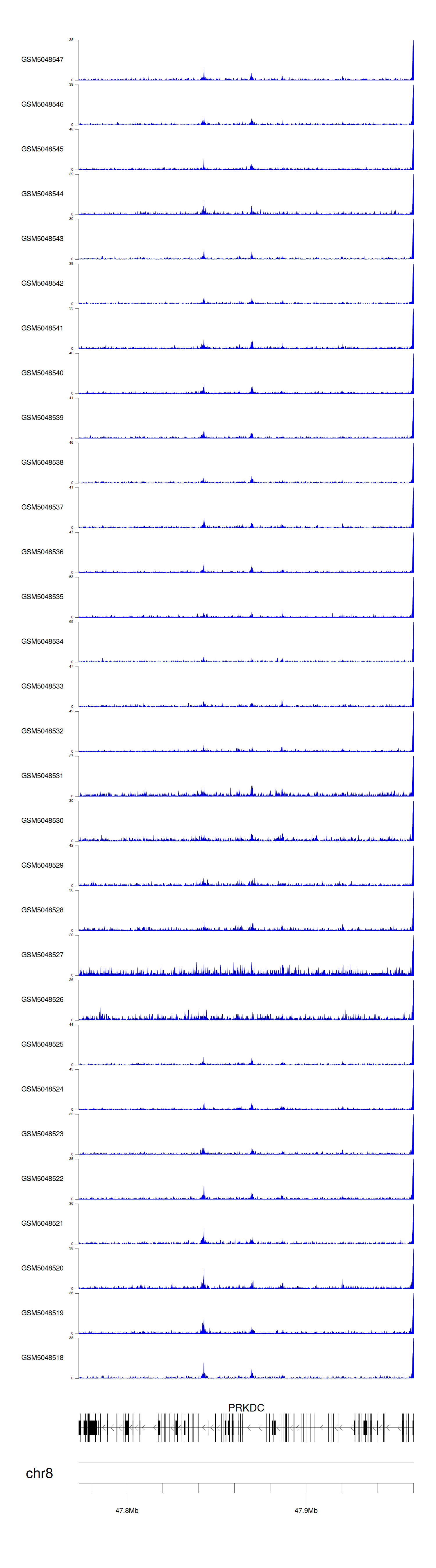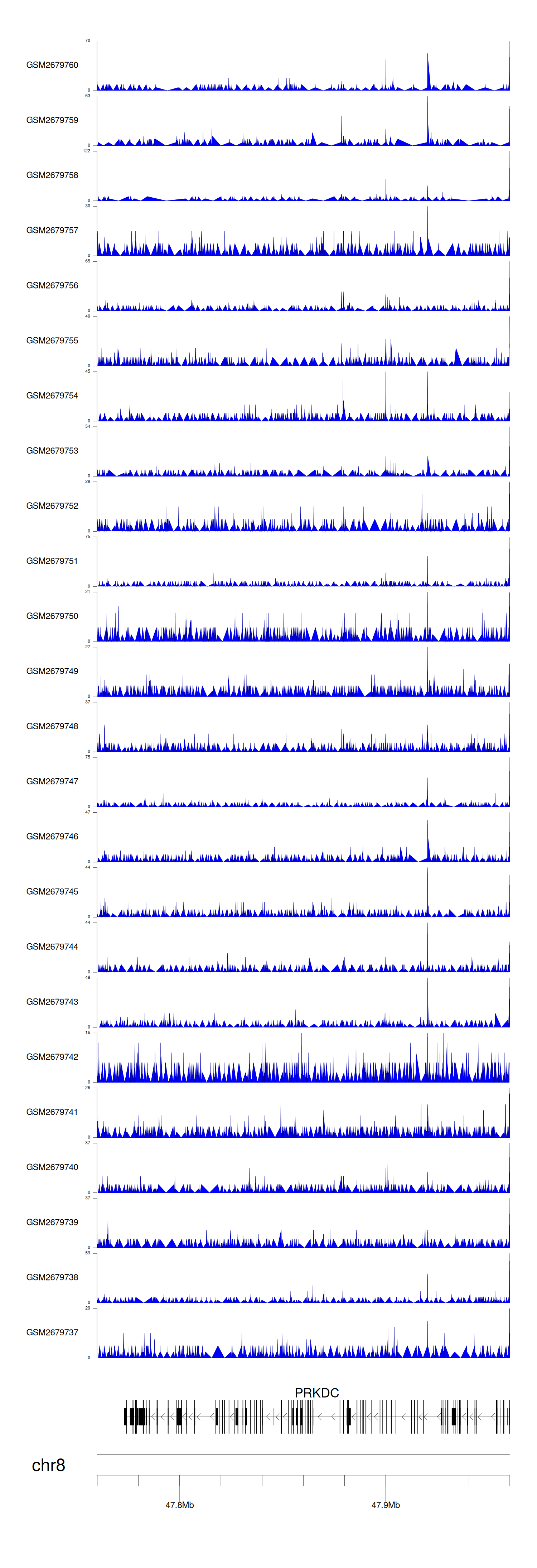 > Dataset: GSE30738 - PRKDC peak across samples
