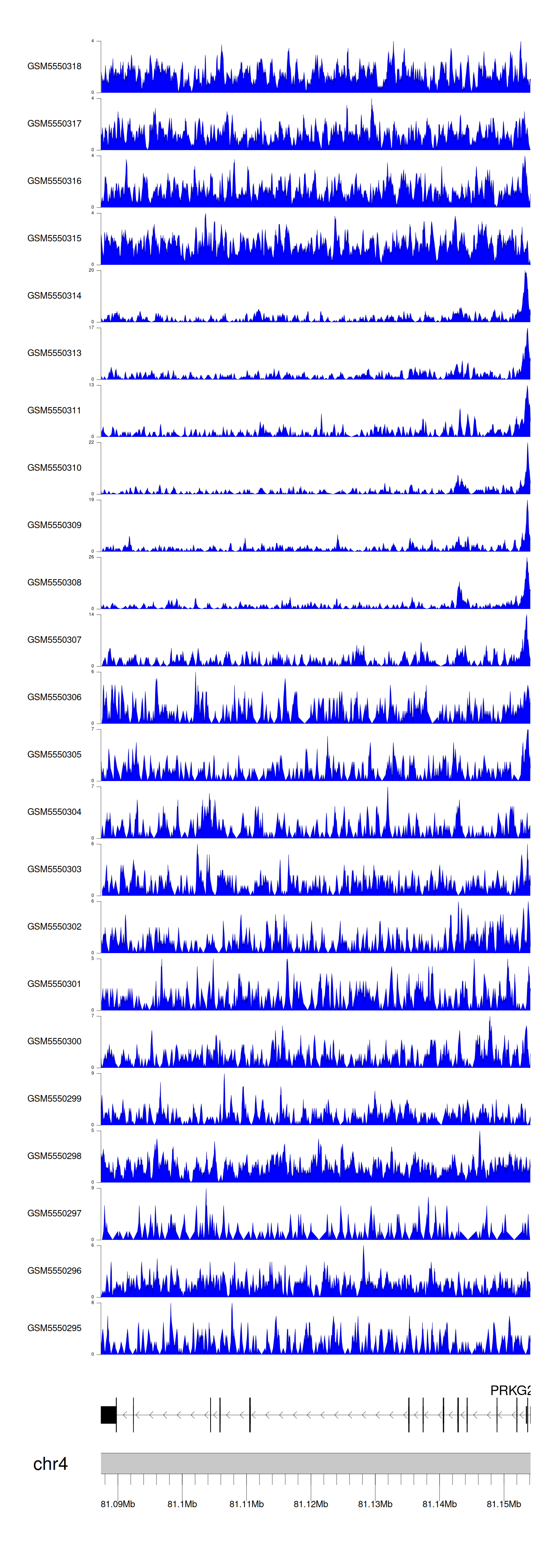 > Dataset: GSE143026 - PRKG2 peak across samples
