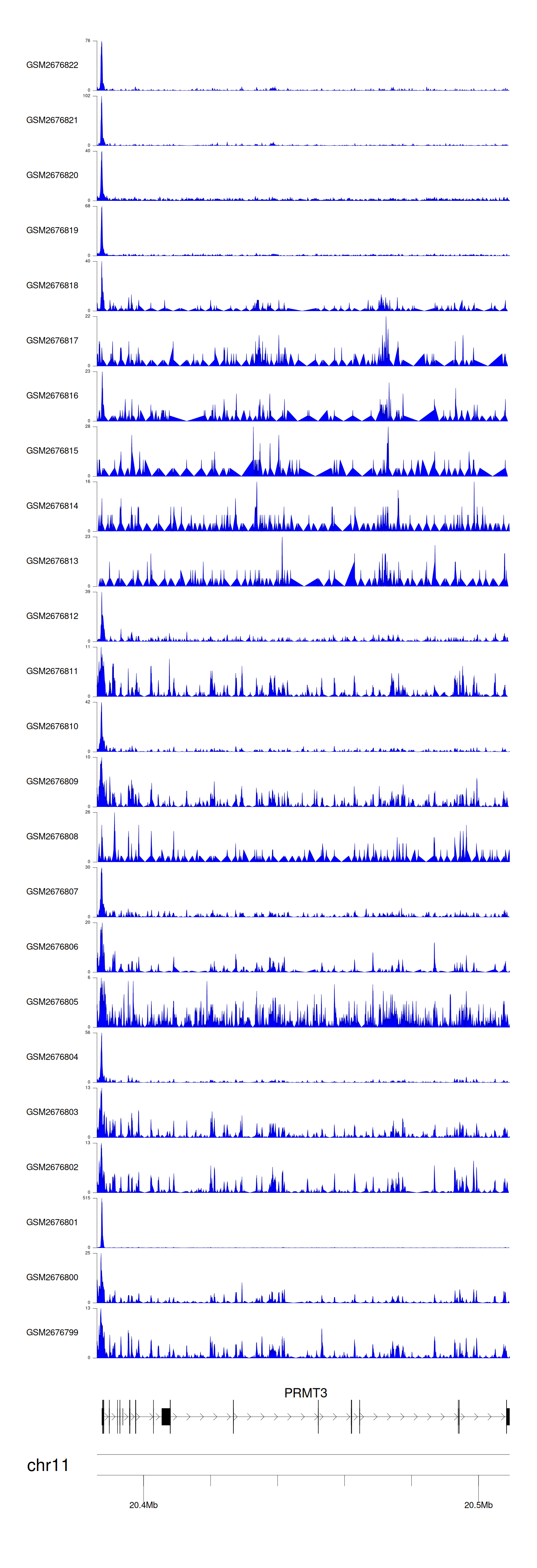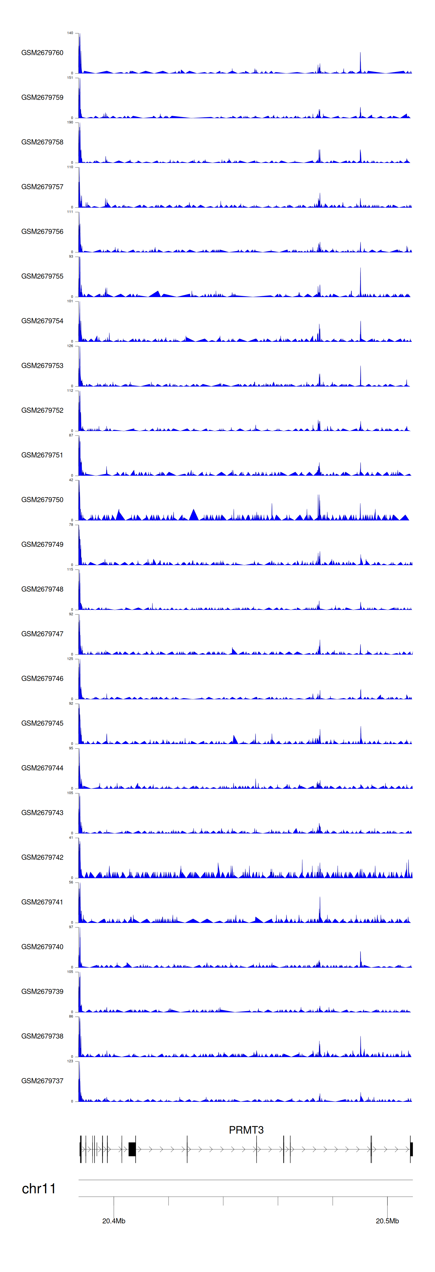 > Dataset: GSE100376 - PRMT3 peak across samples