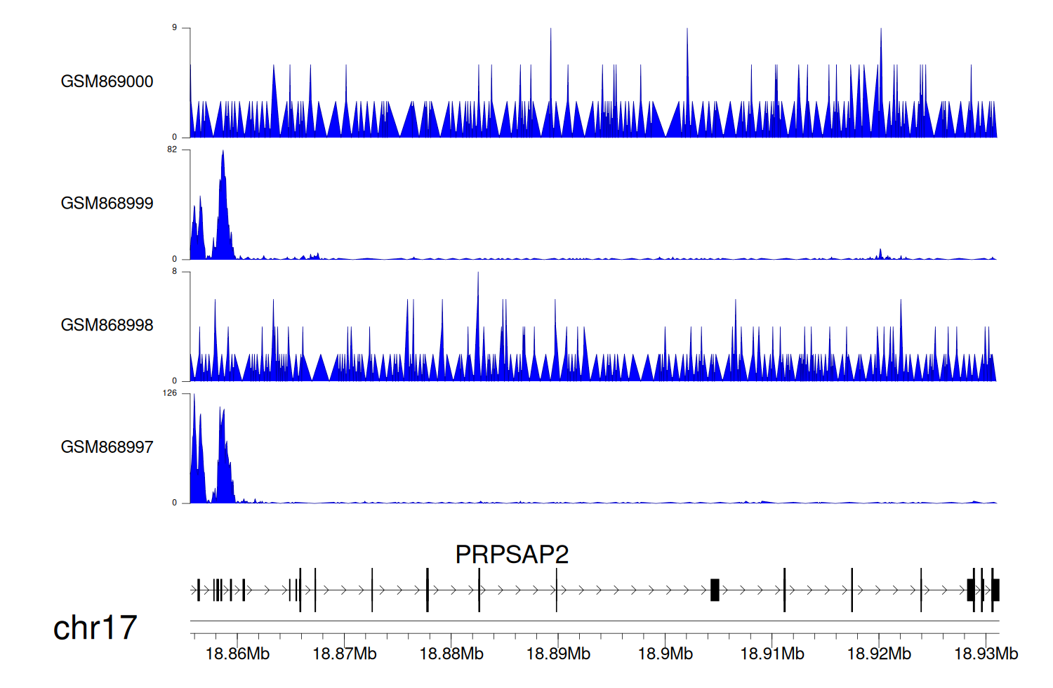 > Dataset: GSE68402 - PRPSAP2 peak across samples