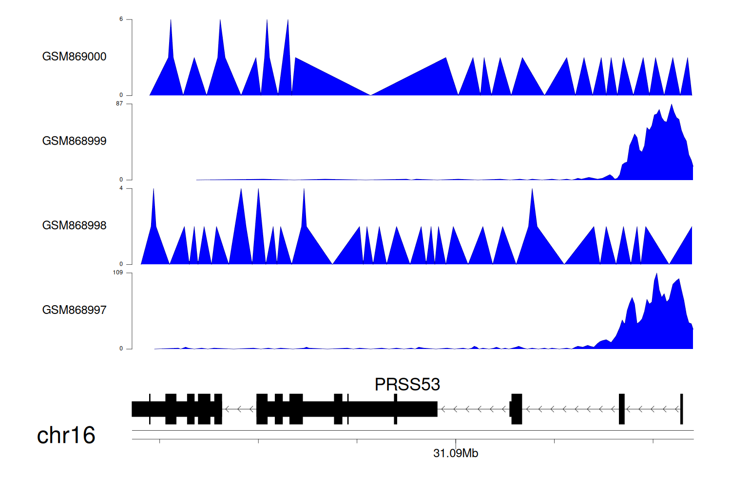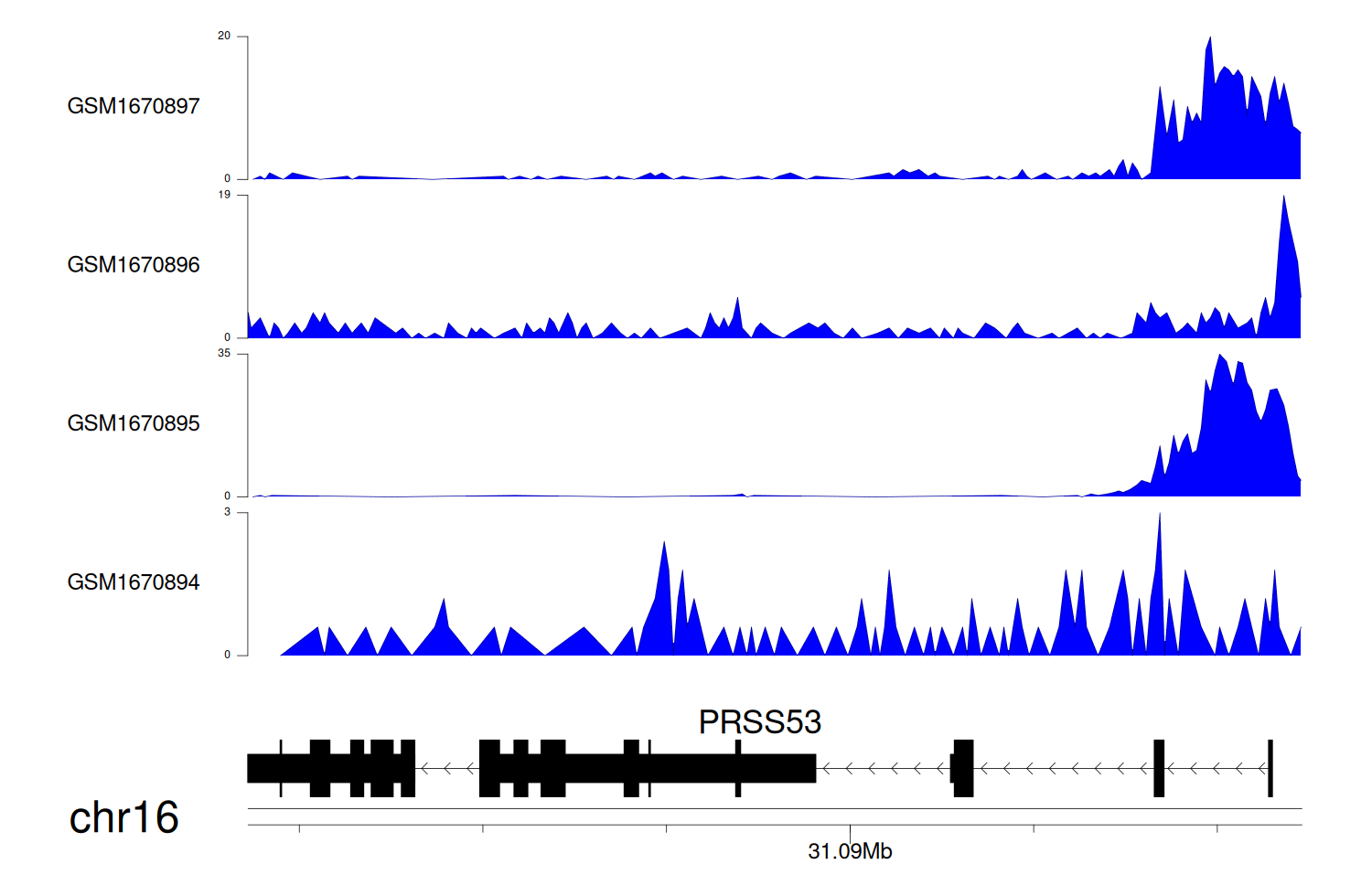 > Dataset: GSE68402 - PRSS53 peak across samples