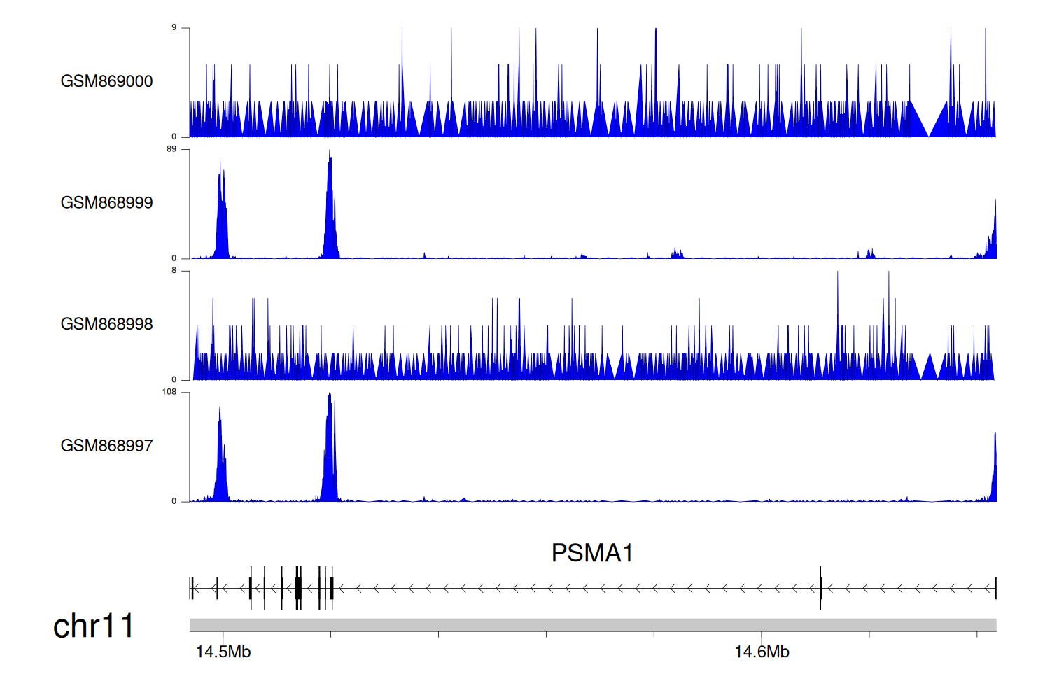 > Dataset: GSE68402 - PSMA1 peak across samples