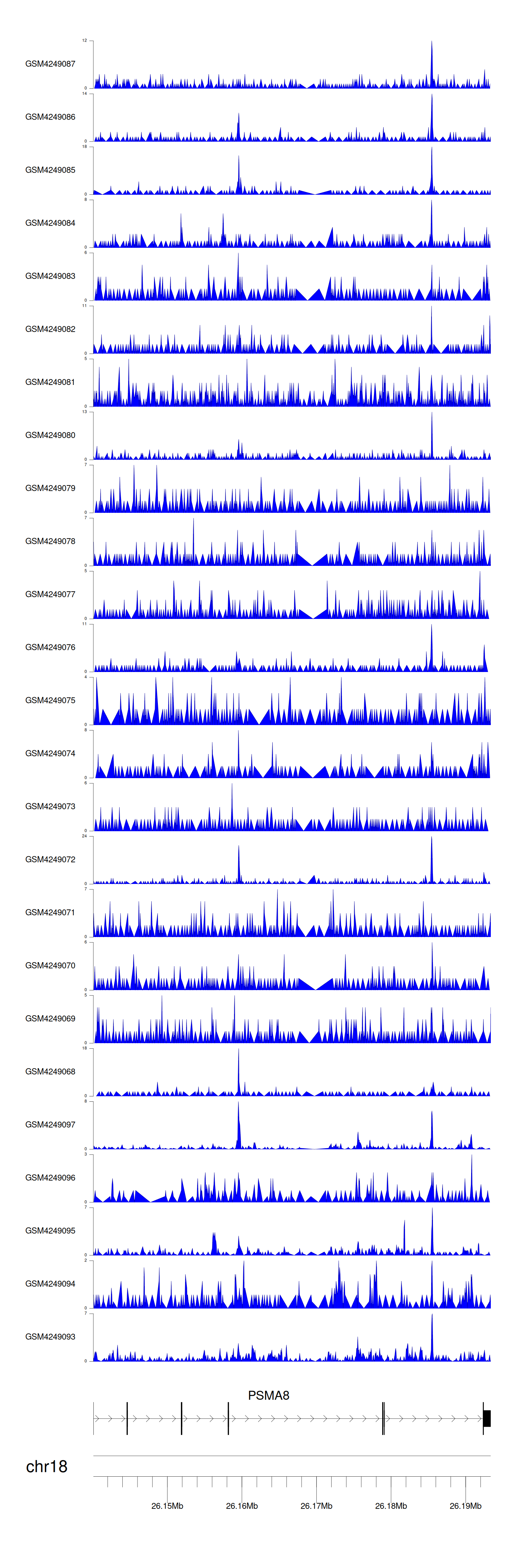 > Dataset: GSE143026 - PSMA8 peak across samples