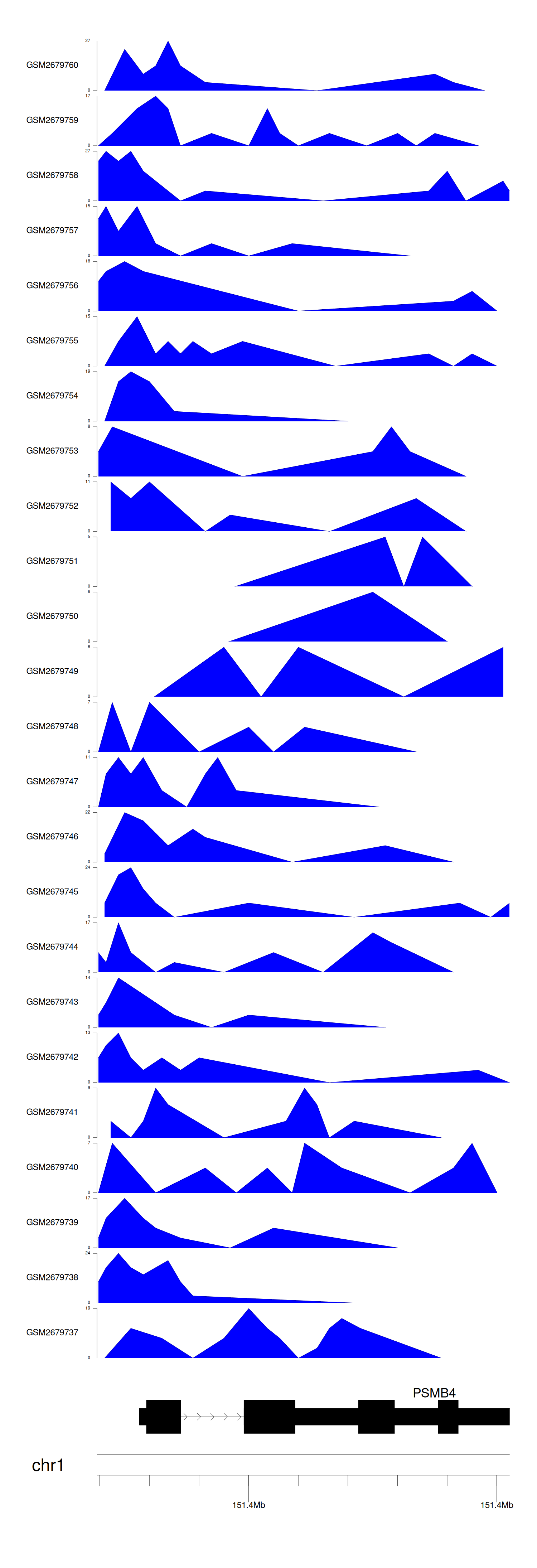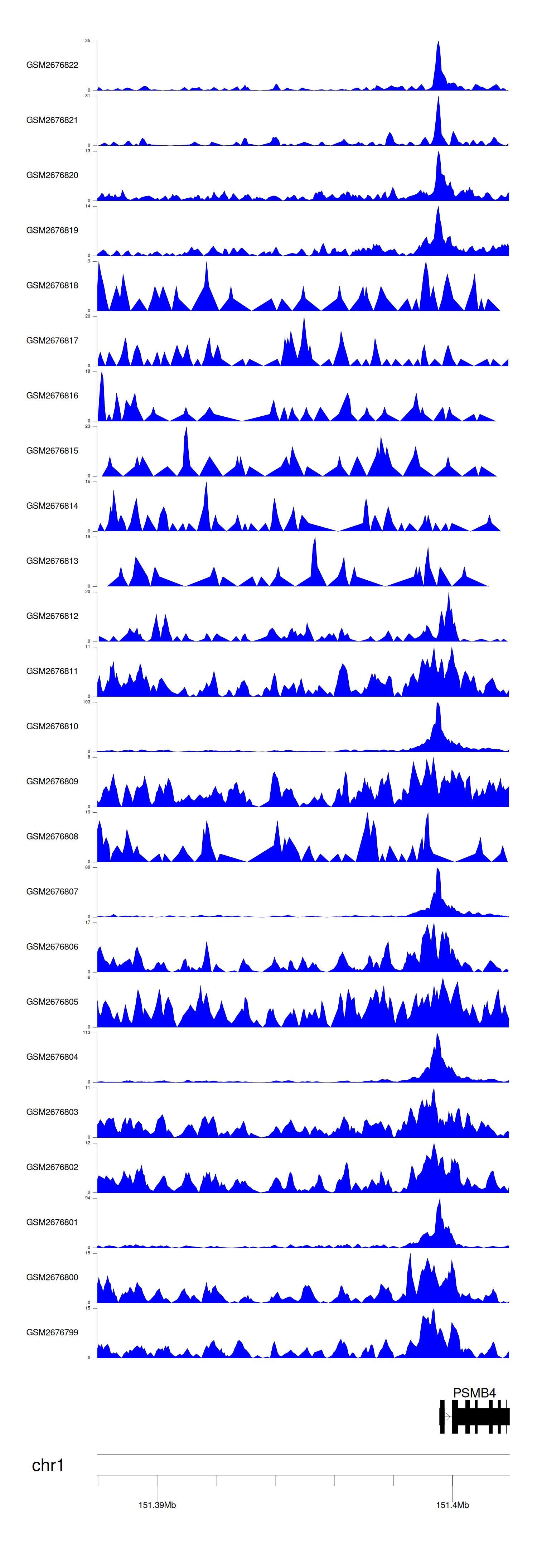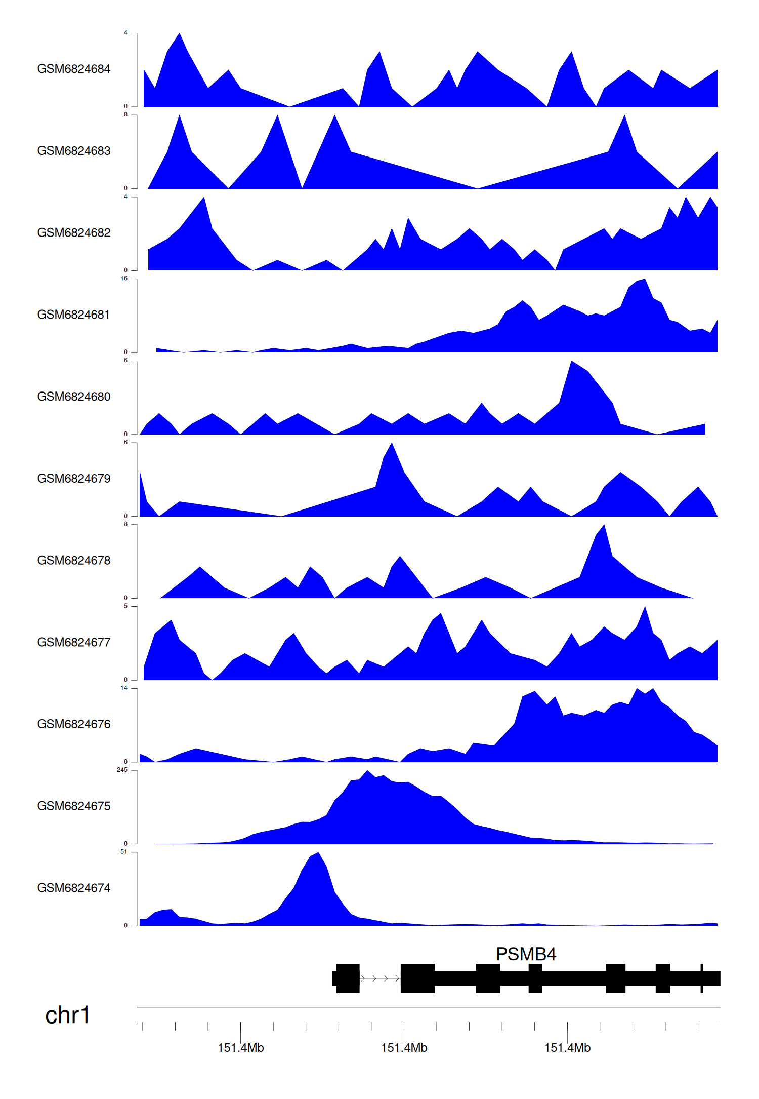 > Dataset: GSE211651 - PSMB4 peak across samples