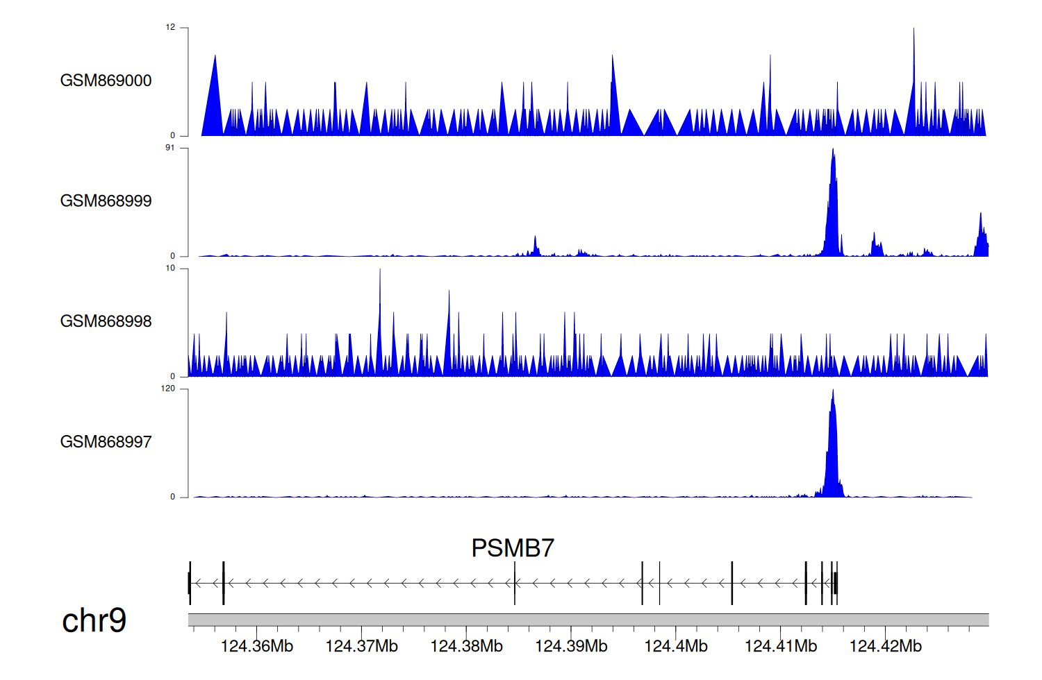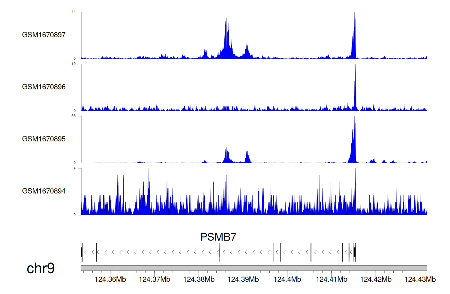 > Dataset: GSE68402 - PSMB7 peak across samples