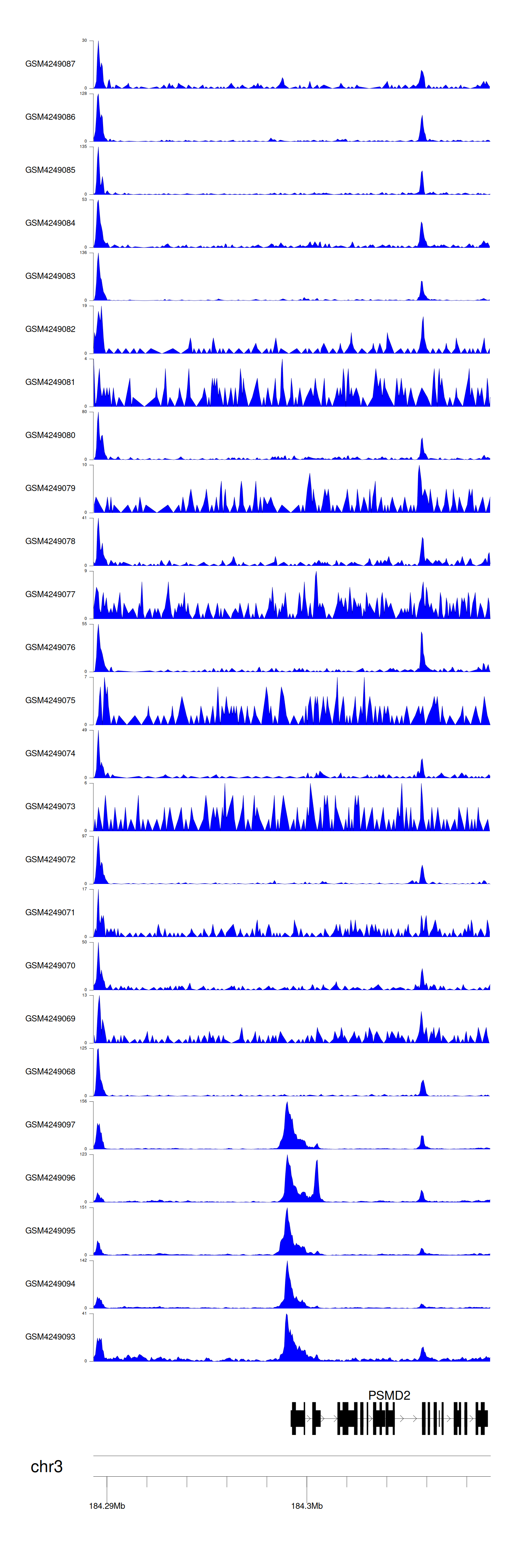 > Dataset: GSE143026 - PSMD2 peak across samples
