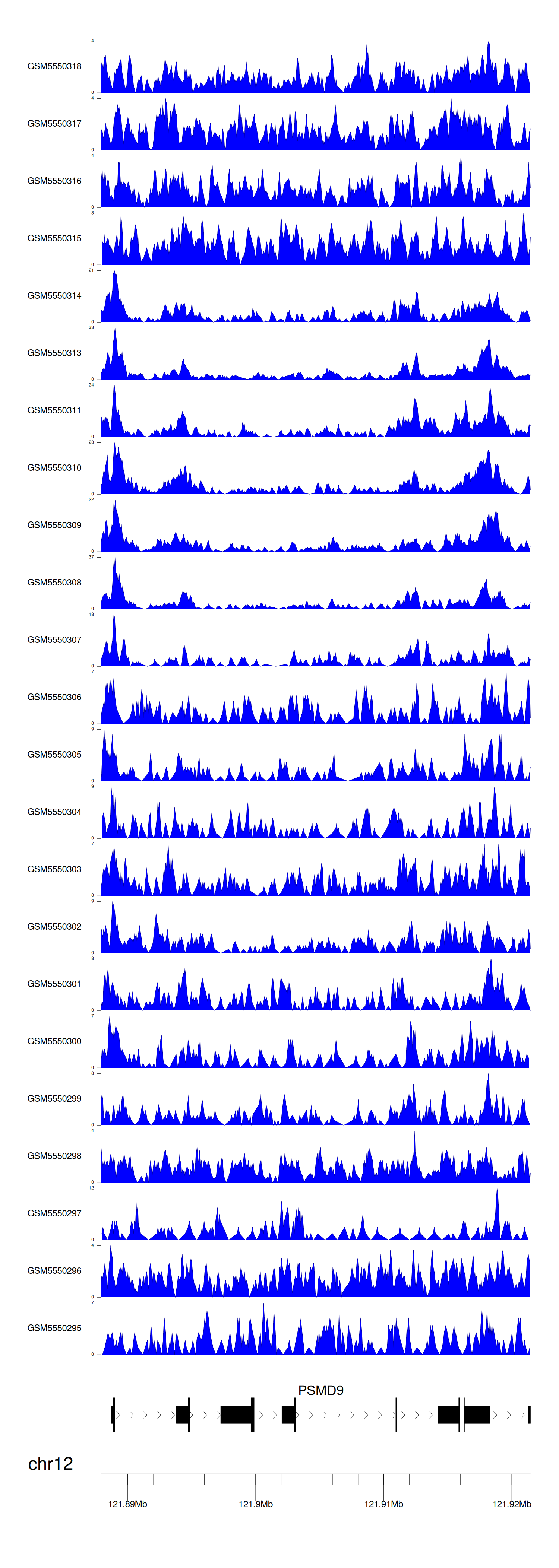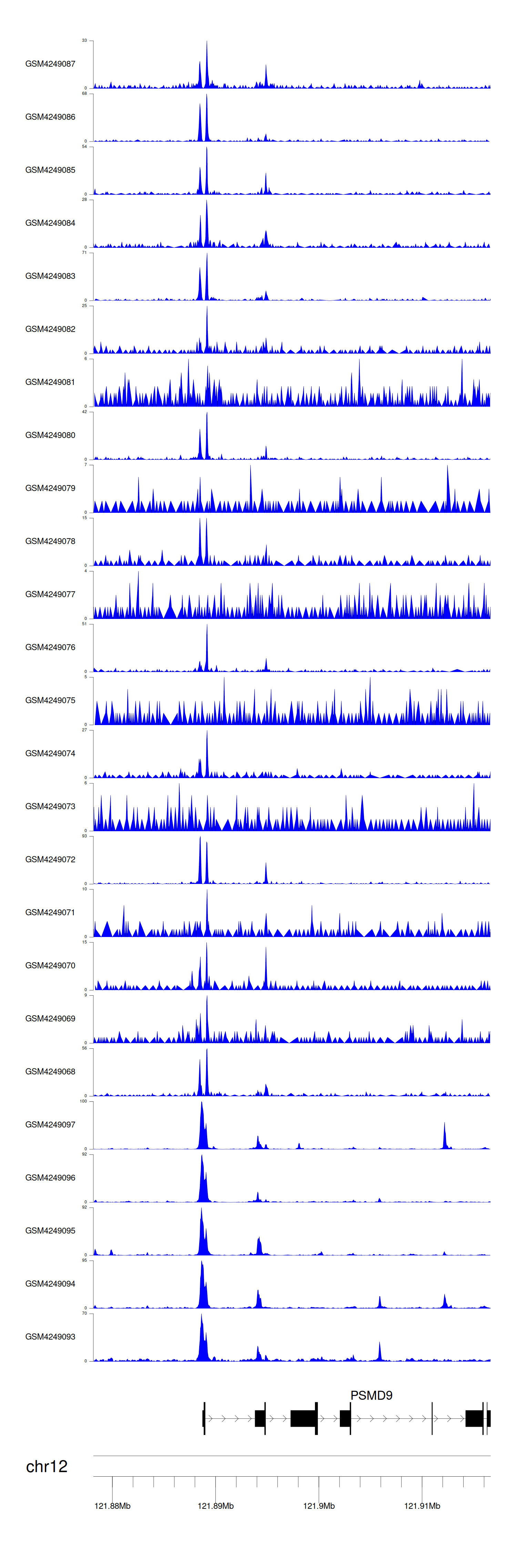 > Dataset: GSE143026 - PSMD9 peak across samples