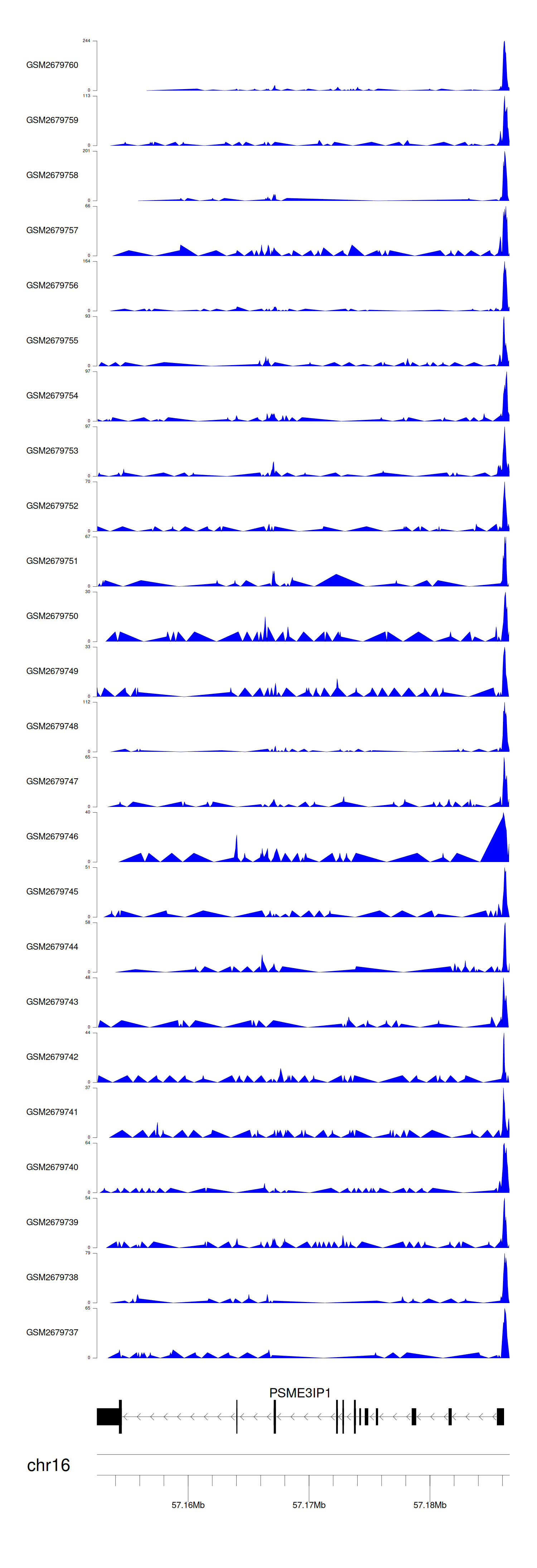 > Dataset: GSE100376 - PSME3IP1 peak across samples