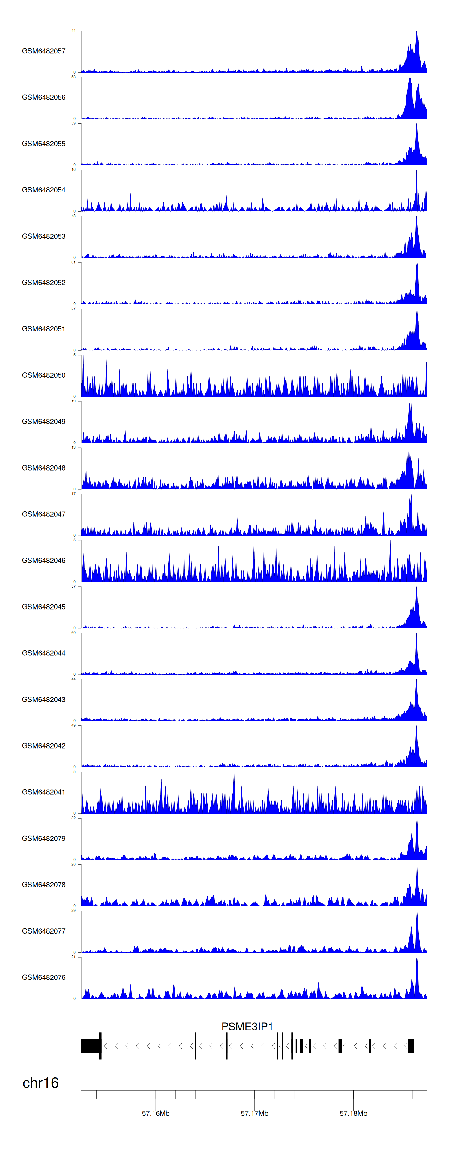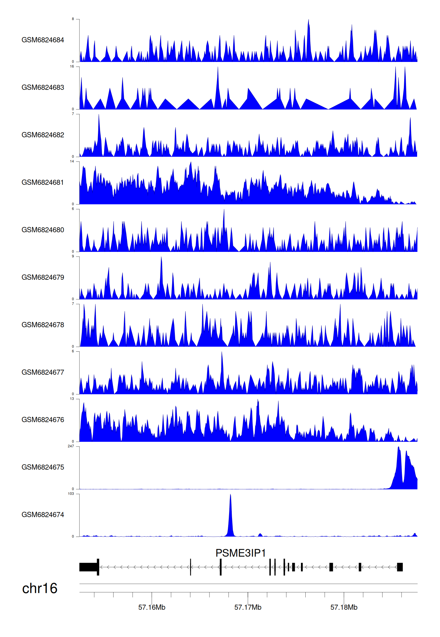 > Dataset: GSE165705 - PSME3IP1 peak across samples