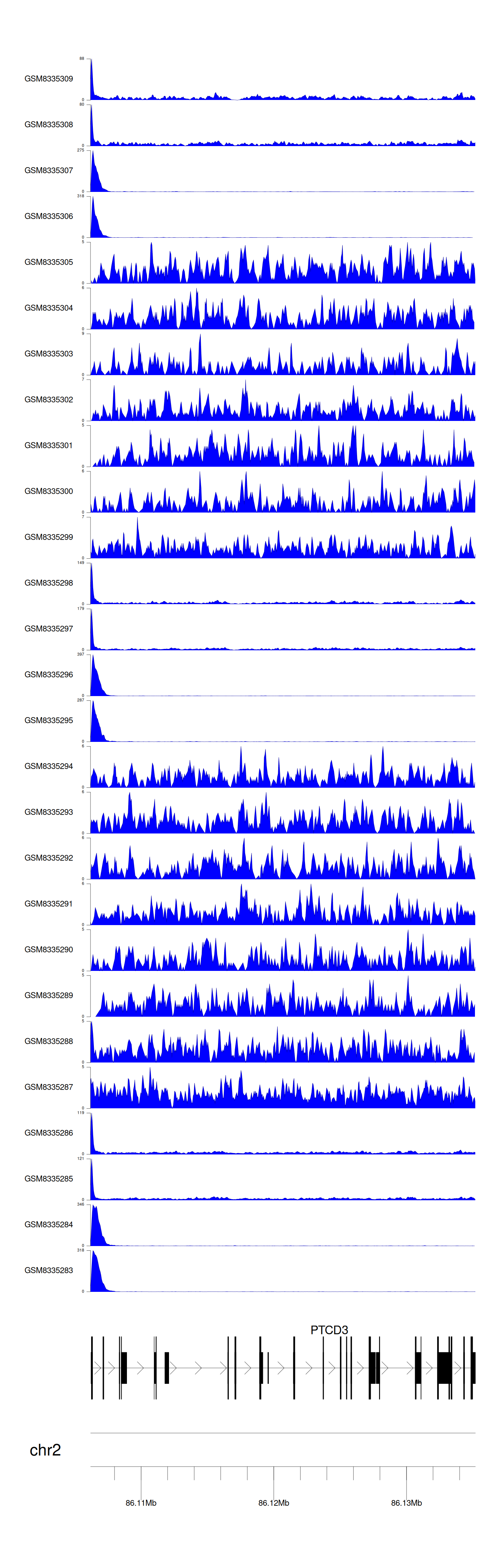 > Dataset: GSE270130 - PTCD3 peak across samples