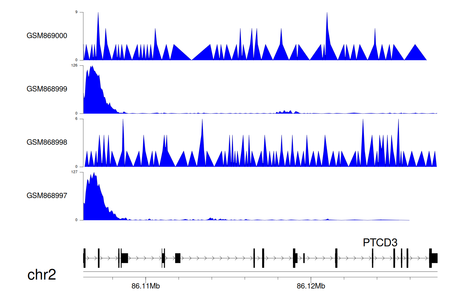 > Dataset: GSE68402 - PTCD3 peak across samples