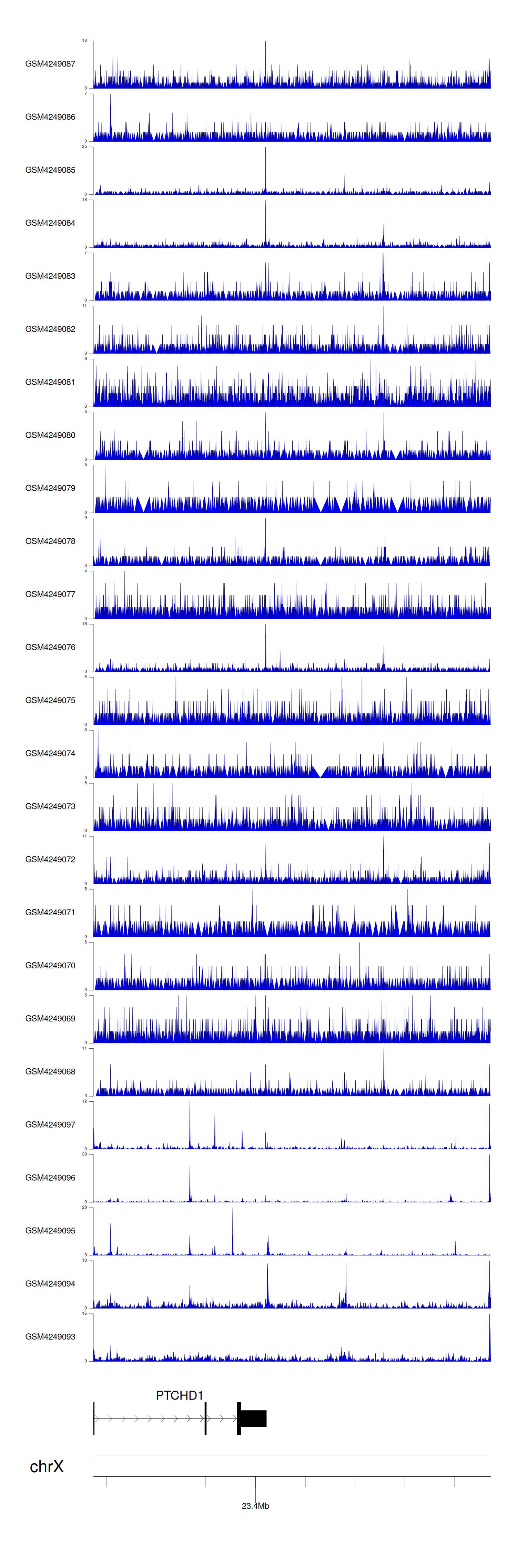 > Dataset: GSE143026 - PTCHD1 peak across samples