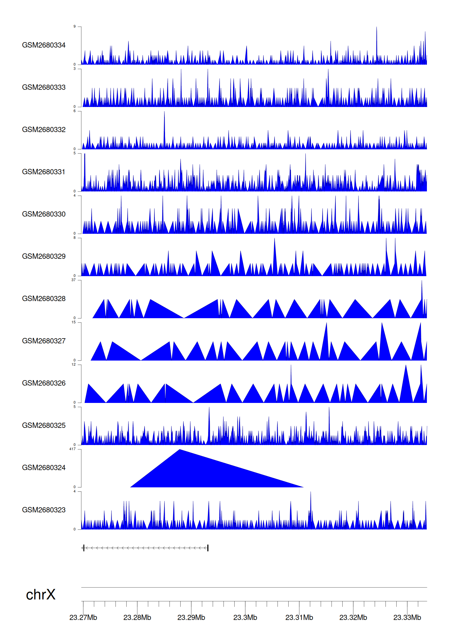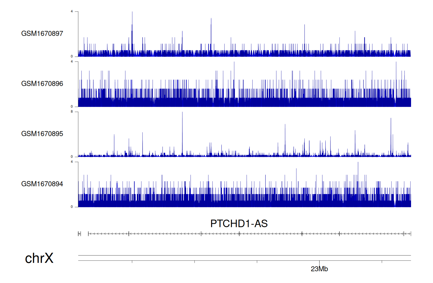 > Dataset: GSE100400 - PTCHD1-AS peak across samples