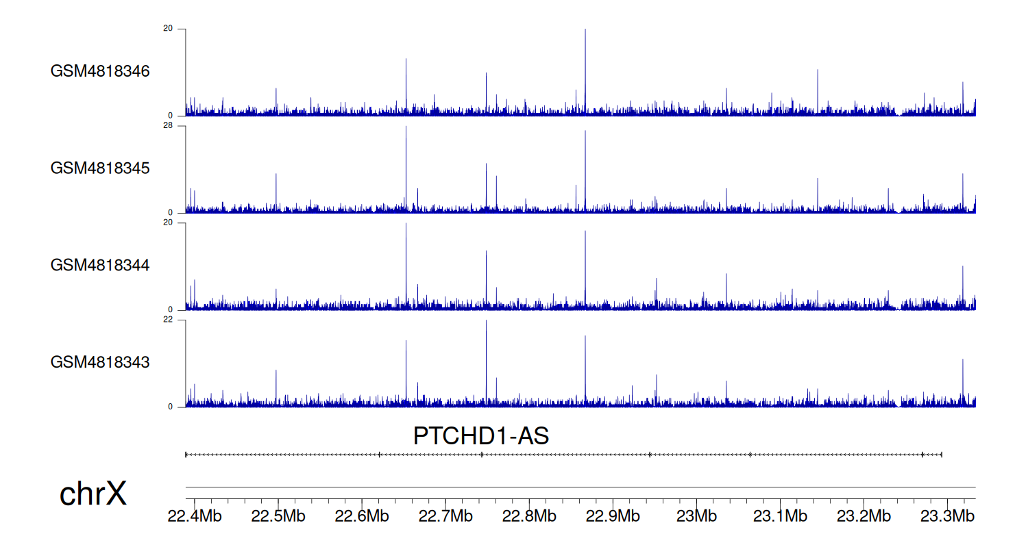 > Dataset: GSE270130 - PTCHD1-AS peak across samples