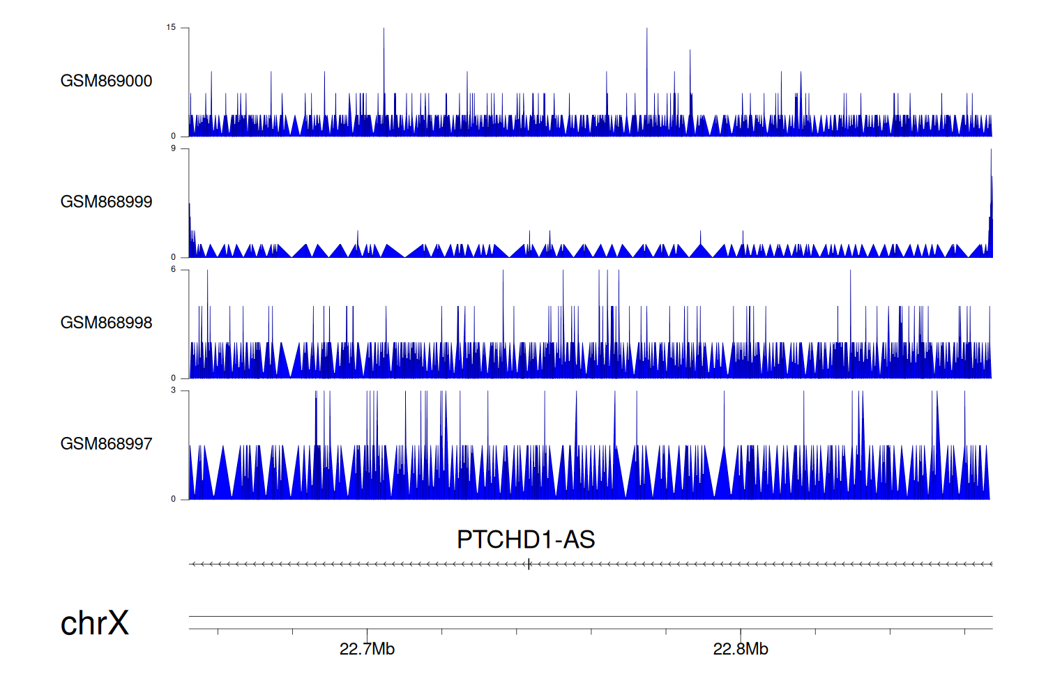 > Dataset: GSE68402 - PTCHD1-AS peak across samples