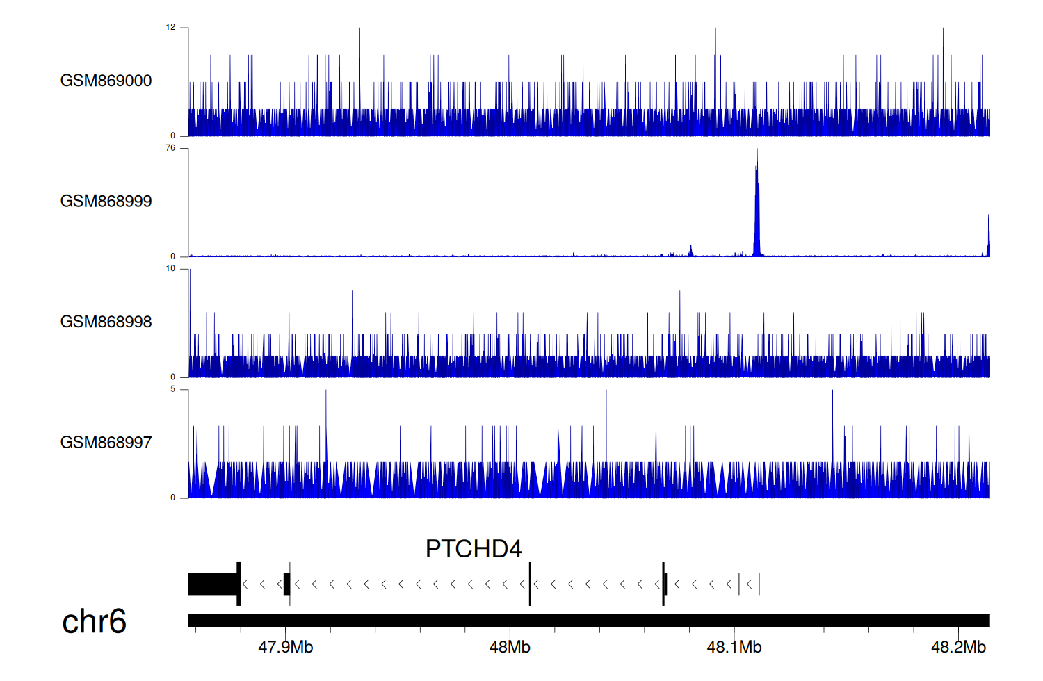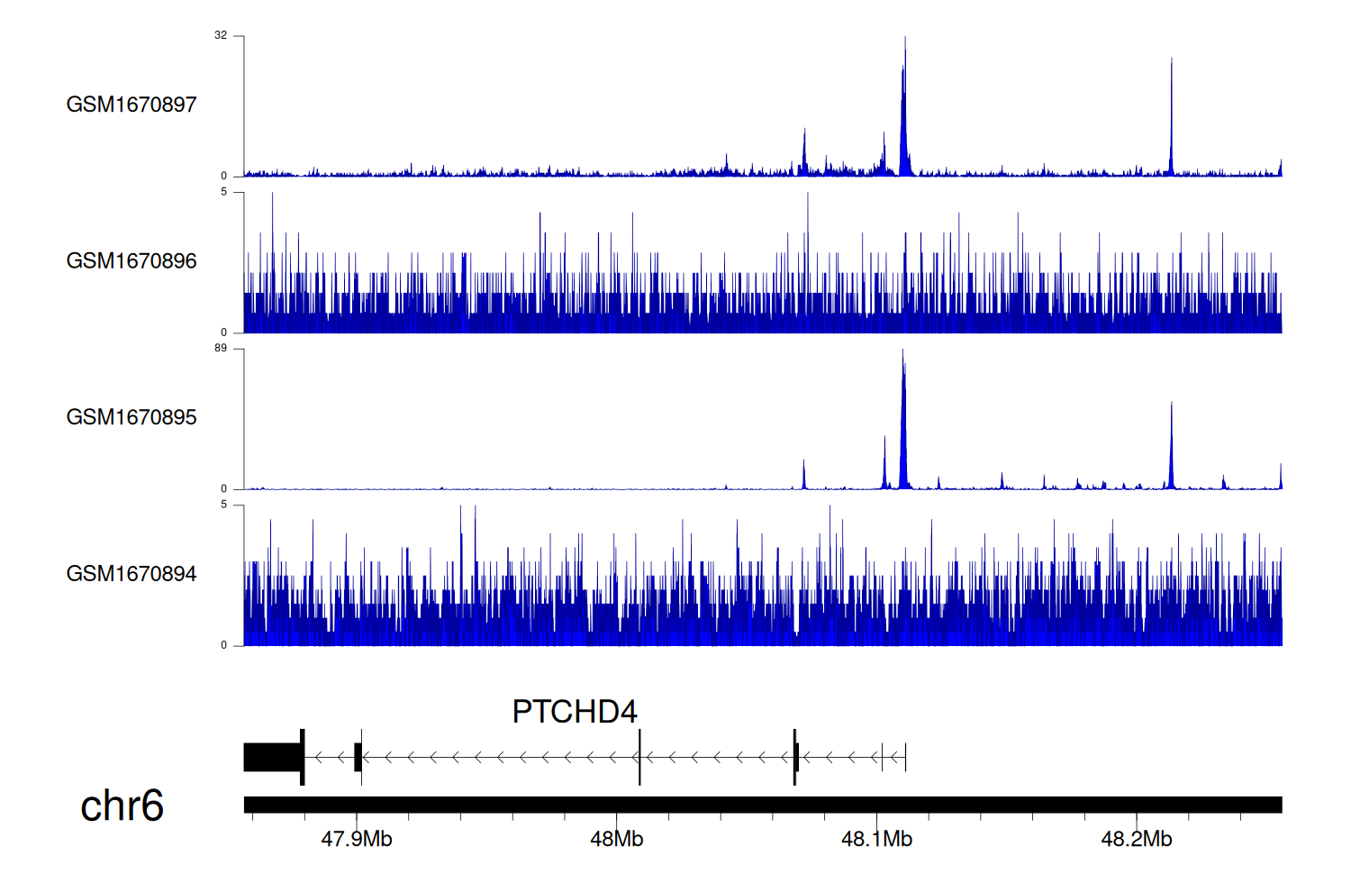 > Dataset: GSE68402 - PTCHD4 peak across samples