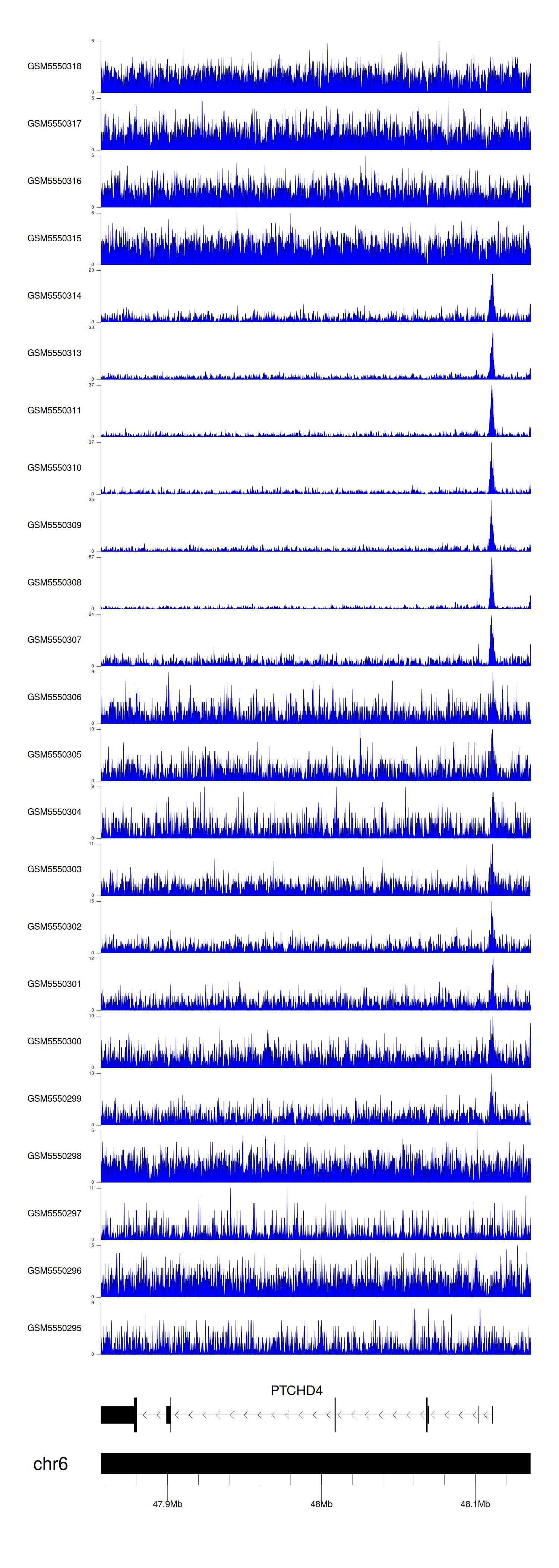 > Dataset: GSE183048 - PTCHD4 peak across samples