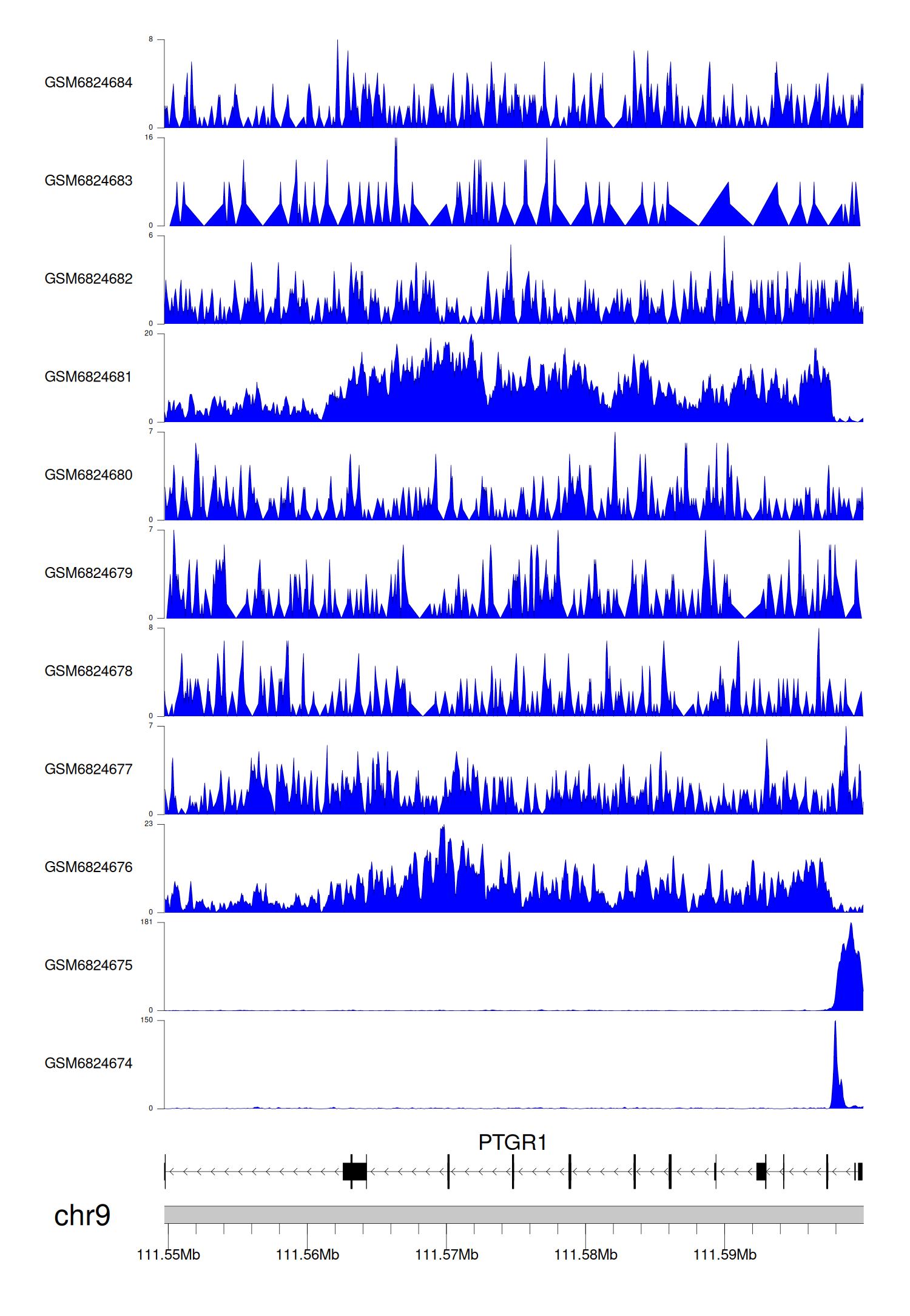 > Dataset: GSE165703 - PTGR1 peak across samples