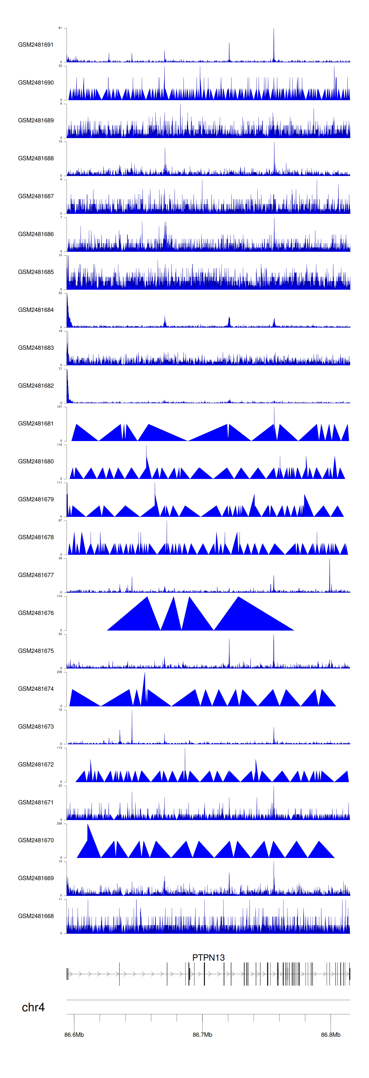 > Dataset: GSE94732 - PTPN13 peak across samples