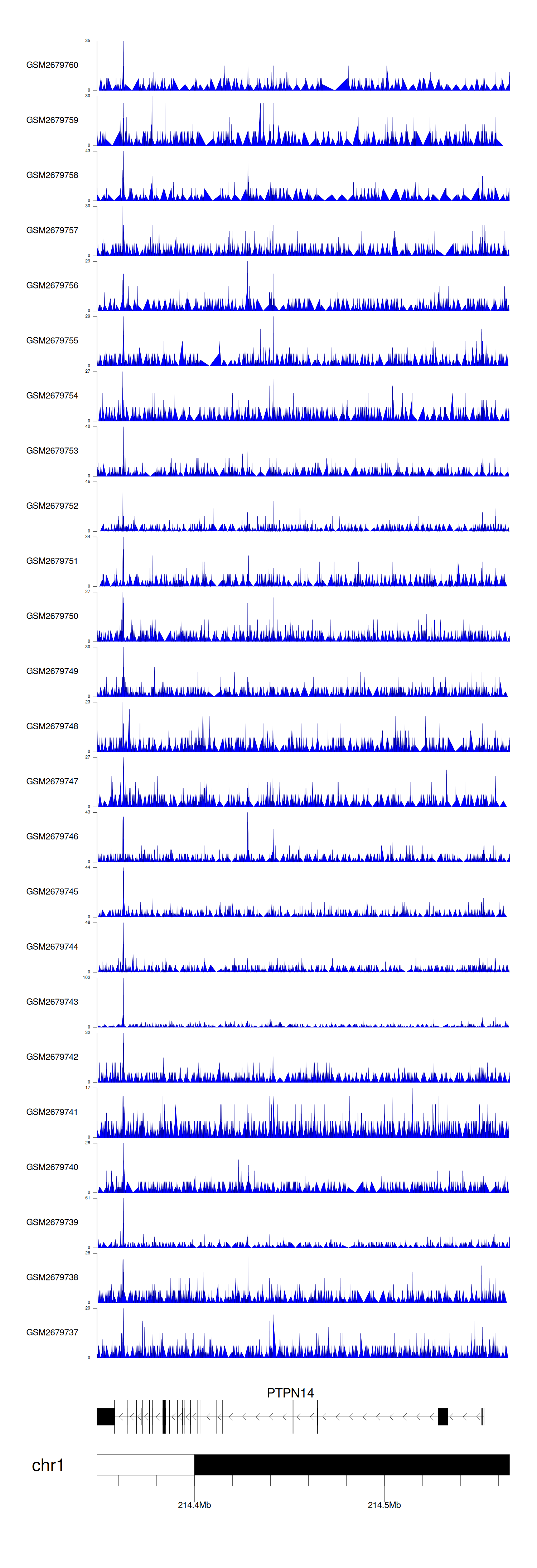 > Dataset: GSE100376 - PTPN14 peak across samples