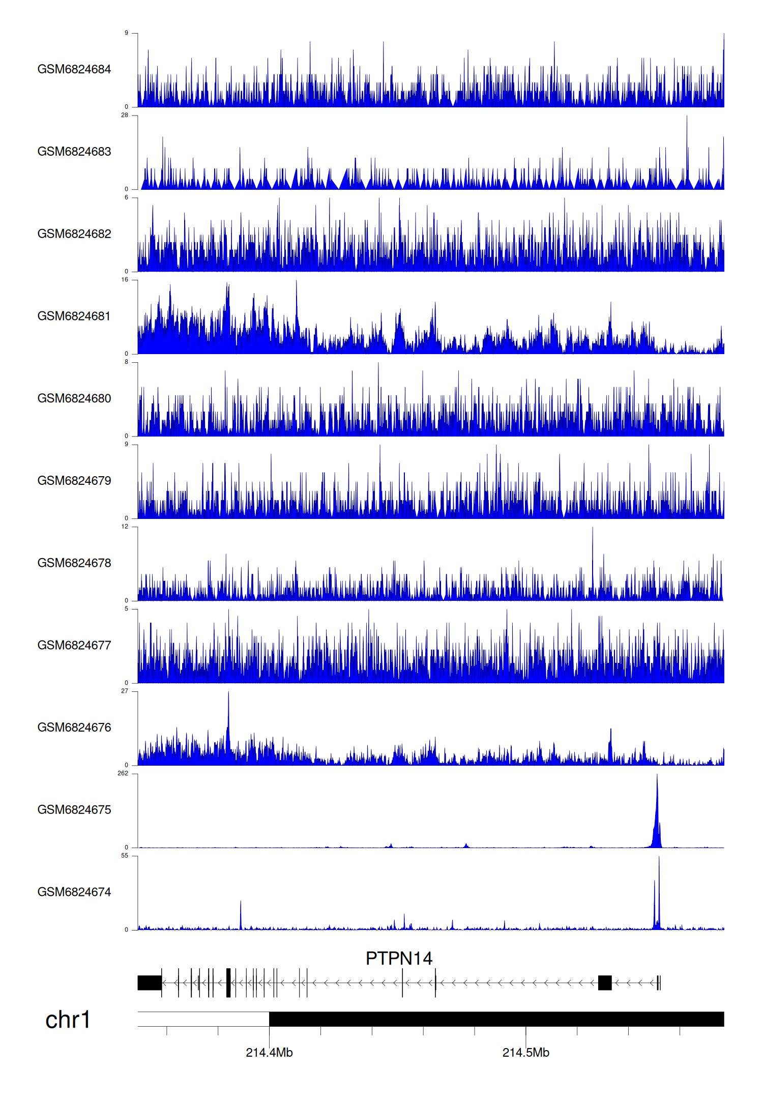 > Dataset: GSE220859 - PTPN14 peak across samples