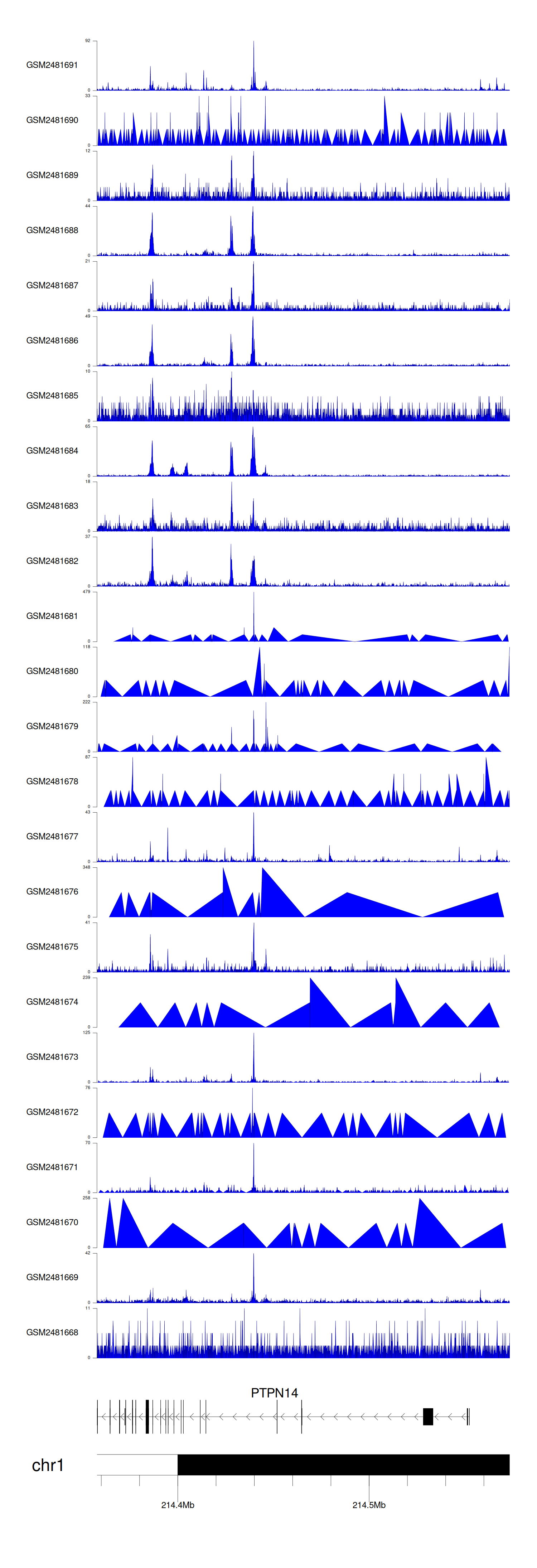 > Dataset: GSE94732 - PTPN14 peak across samples