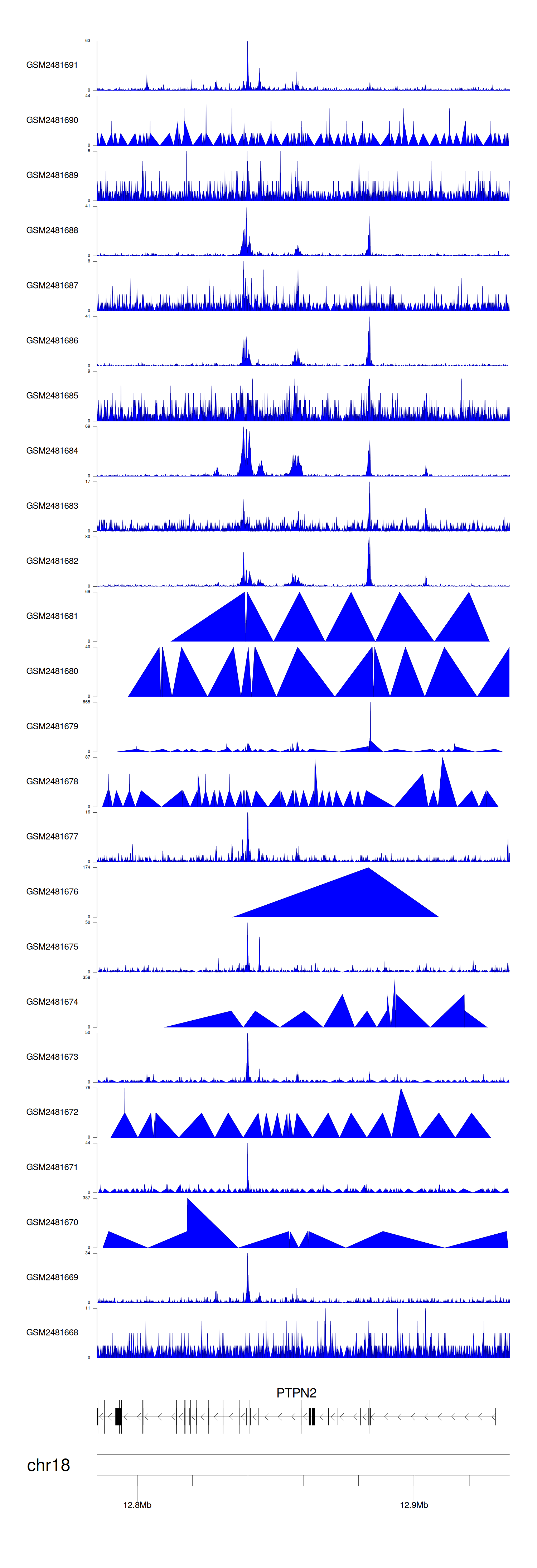 > Dataset: GSE94732 - PTPN2 peak across samples