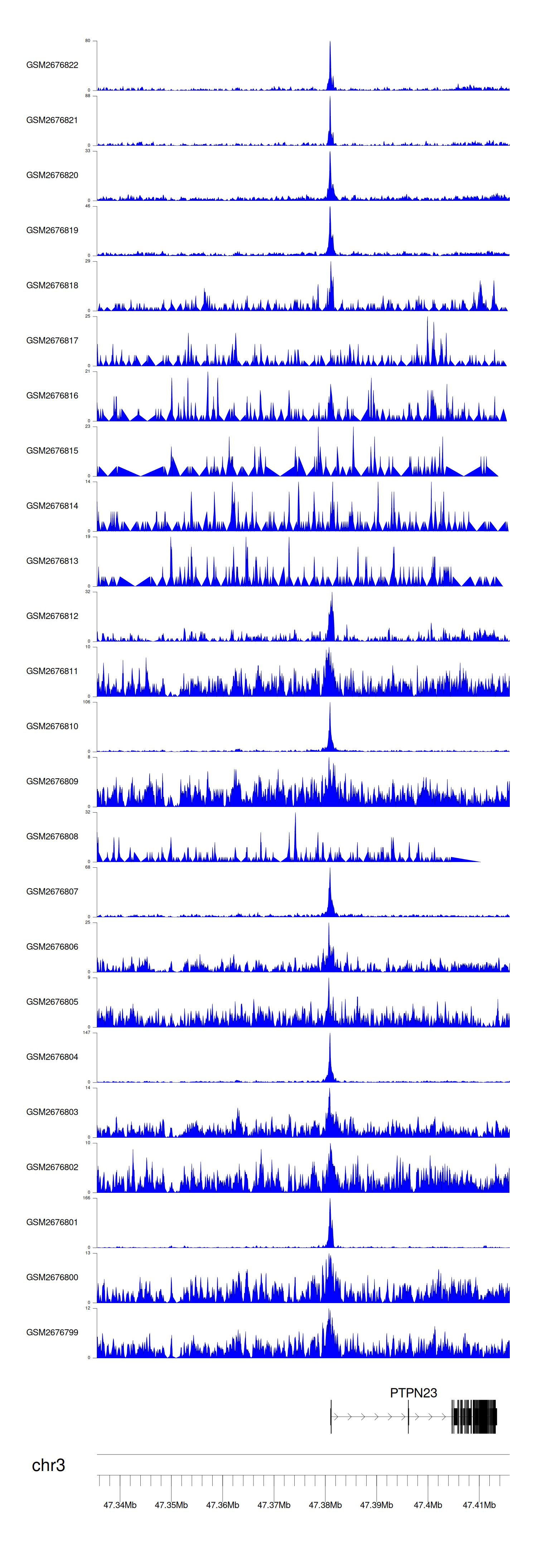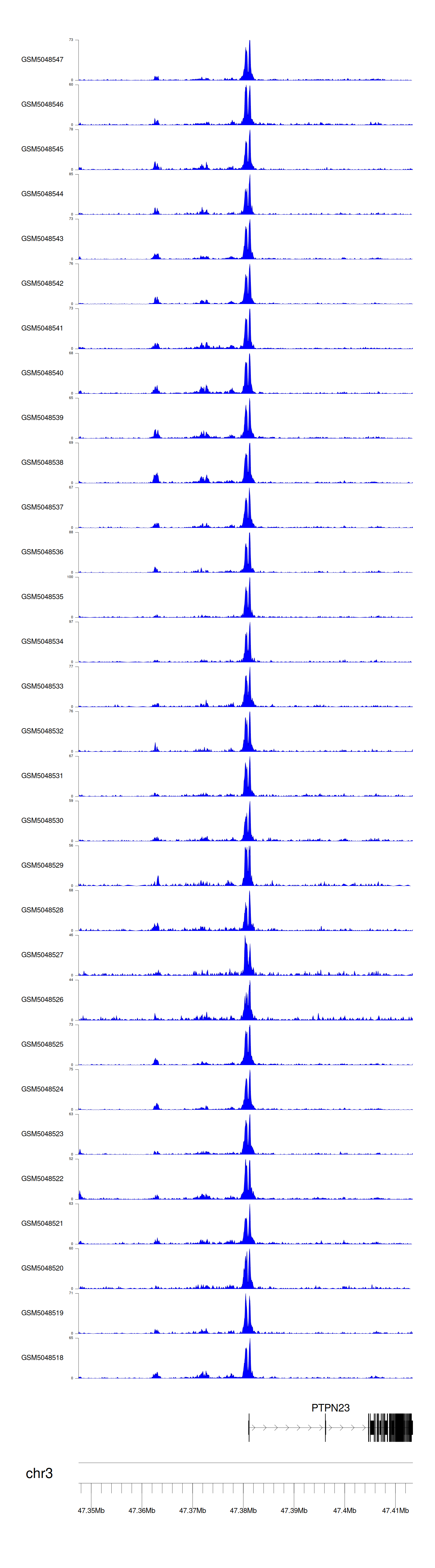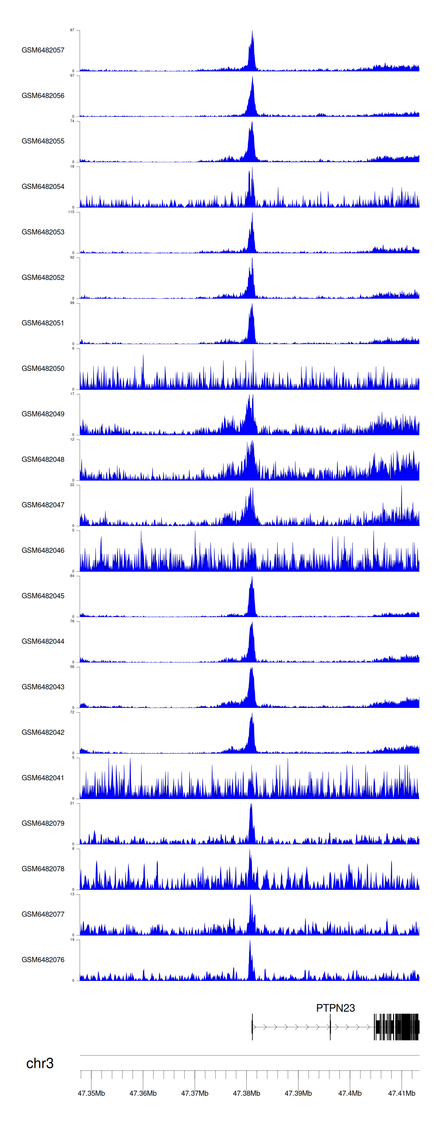 > Dataset: GSE165703 - PTPN23 peak across samples