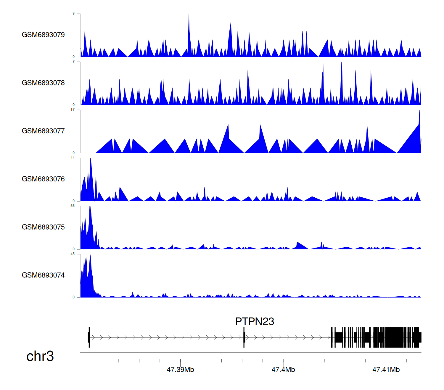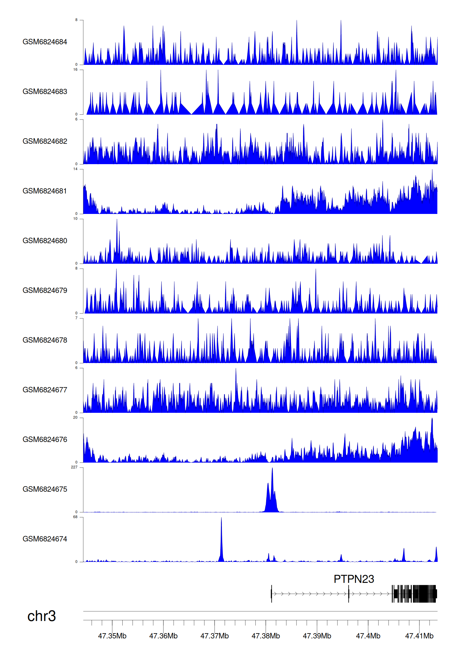 > Dataset: GSE220859 - PTPN23 peak across samples