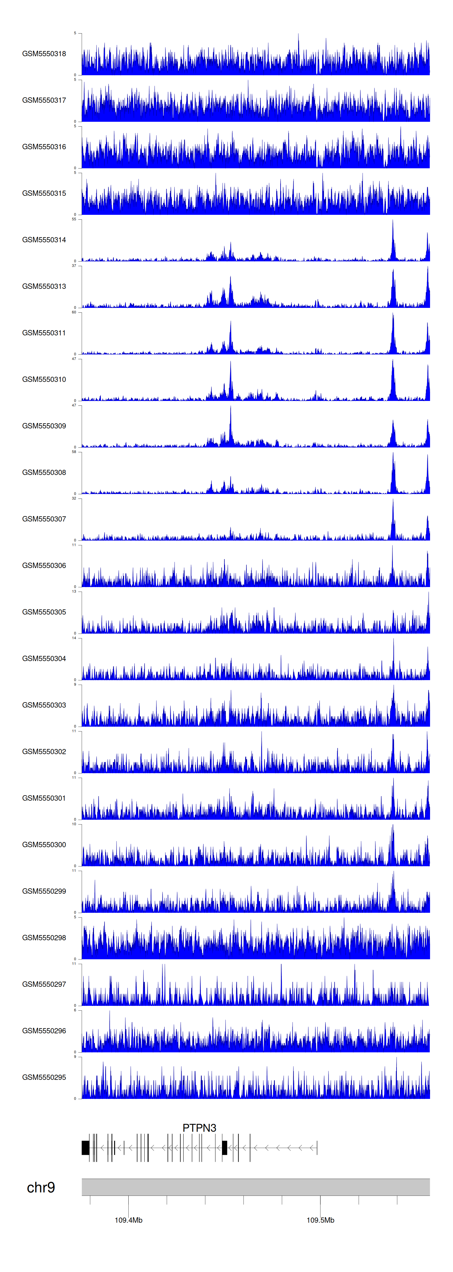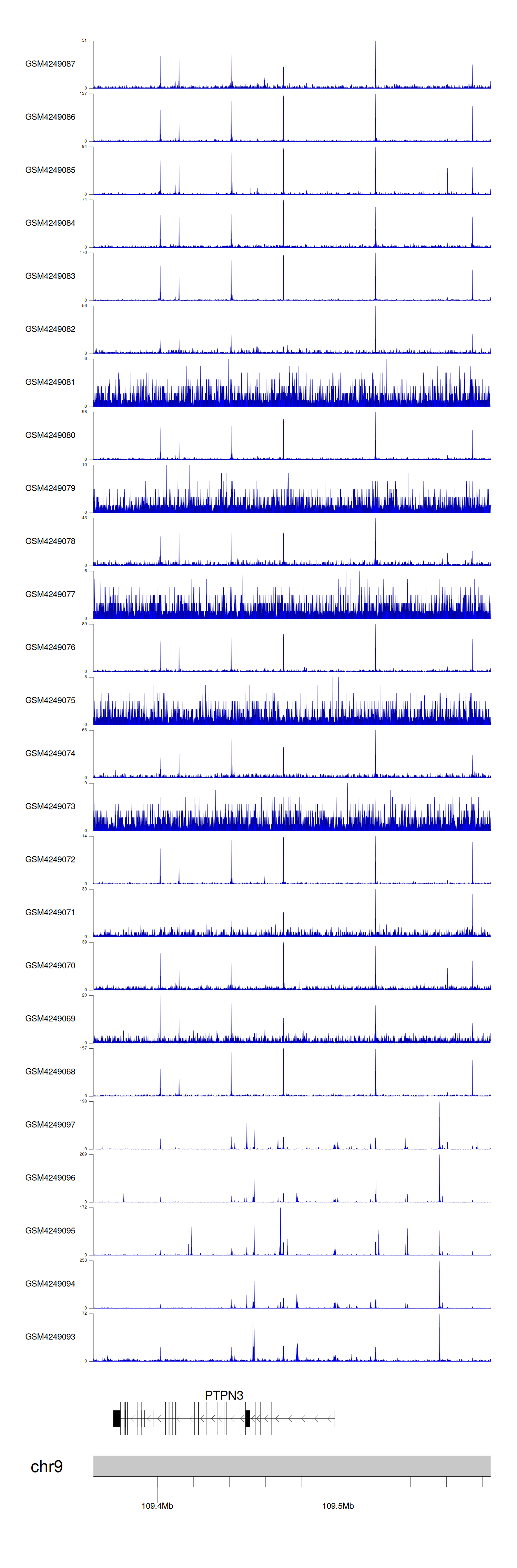 > Dataset: GSE143026 - PTPN3 peak across samples
