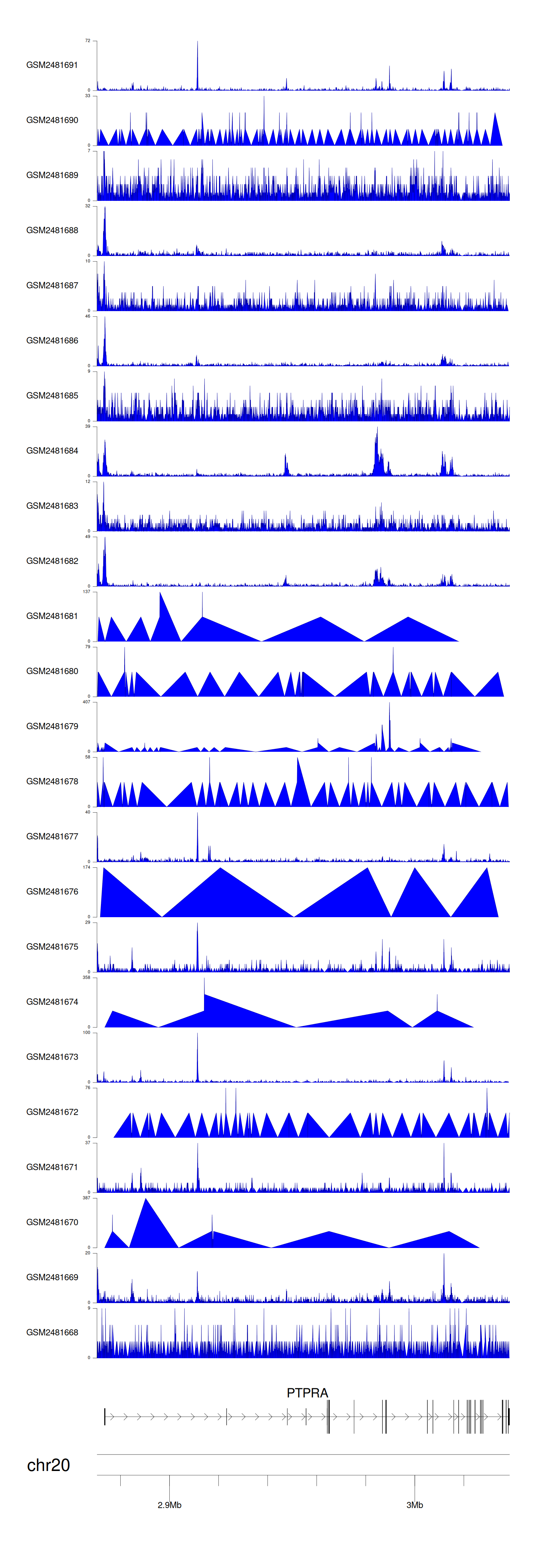 > Dataset: GSE94732 - PTPRA peak across samples