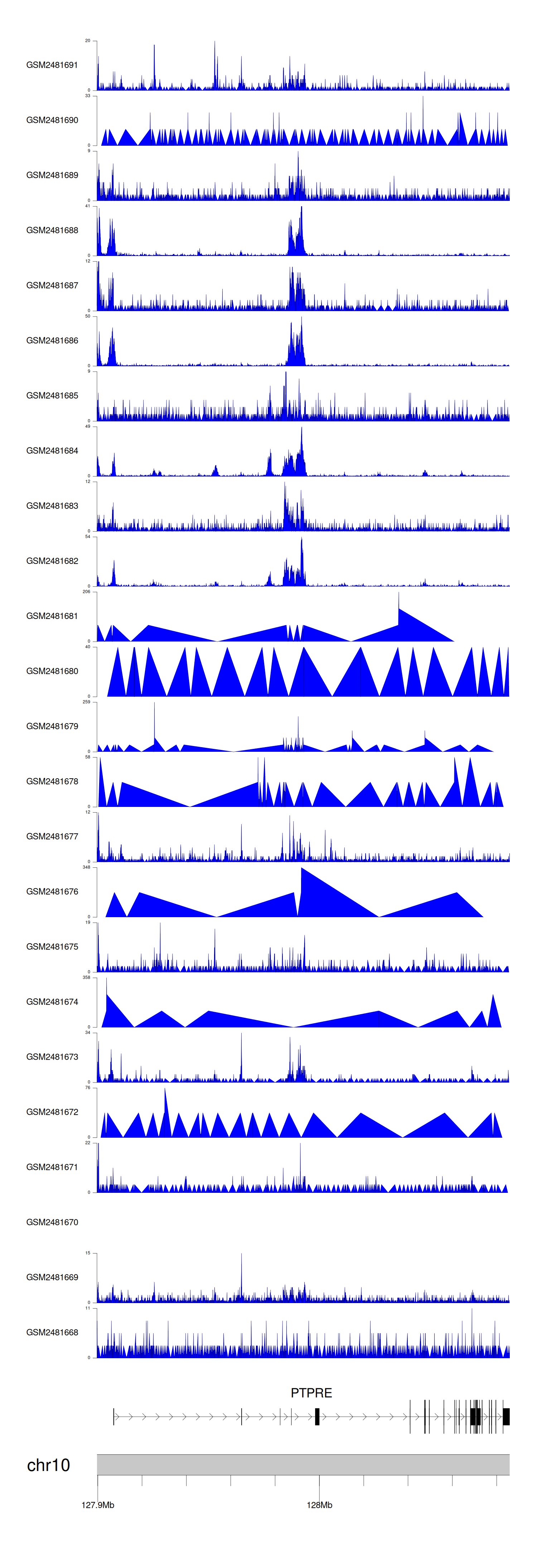 The protein encoded by this gene is a member of the protein tyrosine phosphatase (PTP) family. PTPs are known to be signaling molecules that regulate a variety of cellular processes including cell growth, differentiation, mitotic cycle, and oncogenic transformation. Several alternatively spliced transcript variants of this gene have been reported, at least two of which encode a receptor-type PTP that possesses a short extracellular domain, a single transmembrane region, and two tandem intracytoplasmic catalytic domains; another one encodes a PTP that contains a distinct hydrophilic N-terminus, and thus represents a nonreceptor-type isoform of this PTP. Studies of the similar gene in mice suggested the regulatory roles of this PTP in RAS related signal transduction pathways, cytokine-induced SATA signaling, as well as the activation of voltage-gated K+ channels. [provided by RefSeq, Oct 2015] |