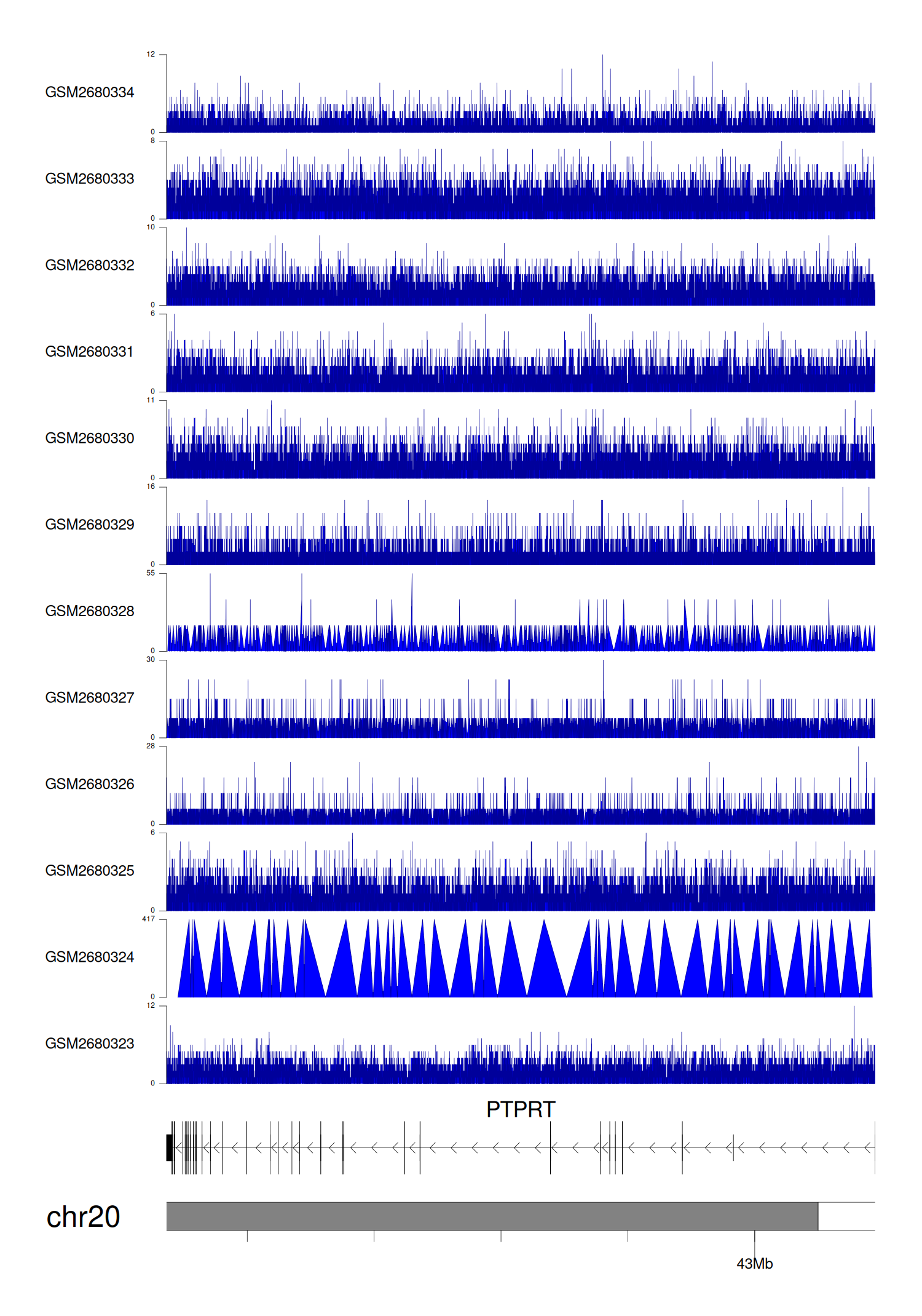 > Dataset: GSE68402 - PTPRT peak across samples