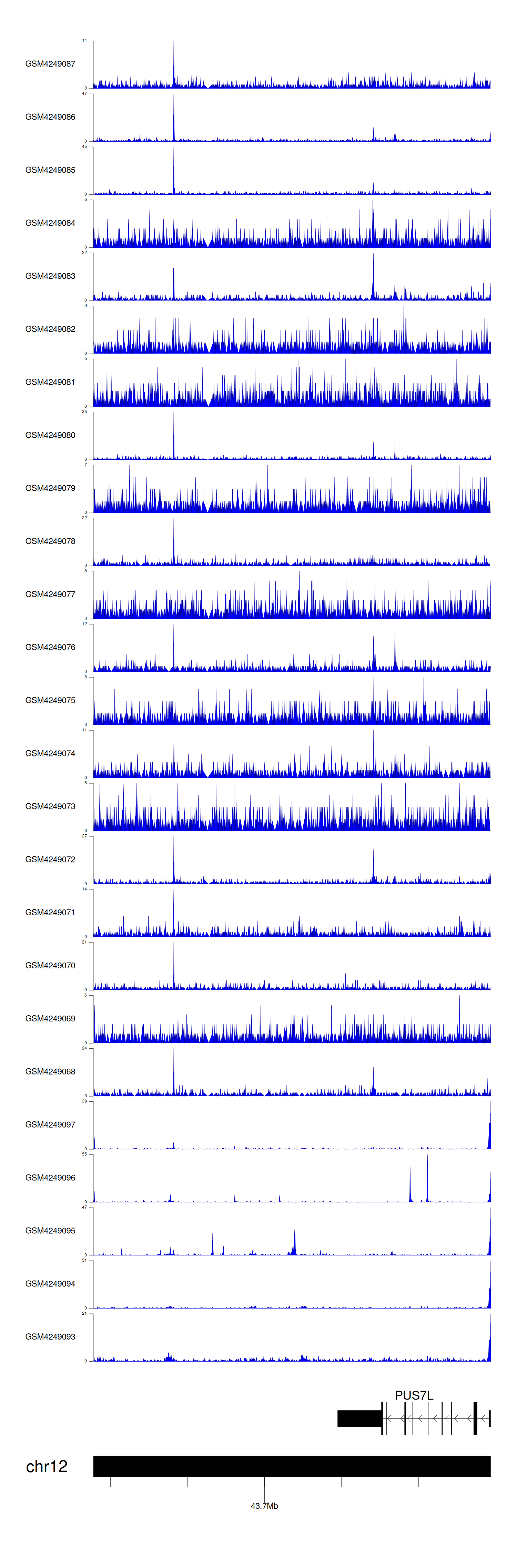 > Dataset: GSE143026 - PUS7L peak across samples