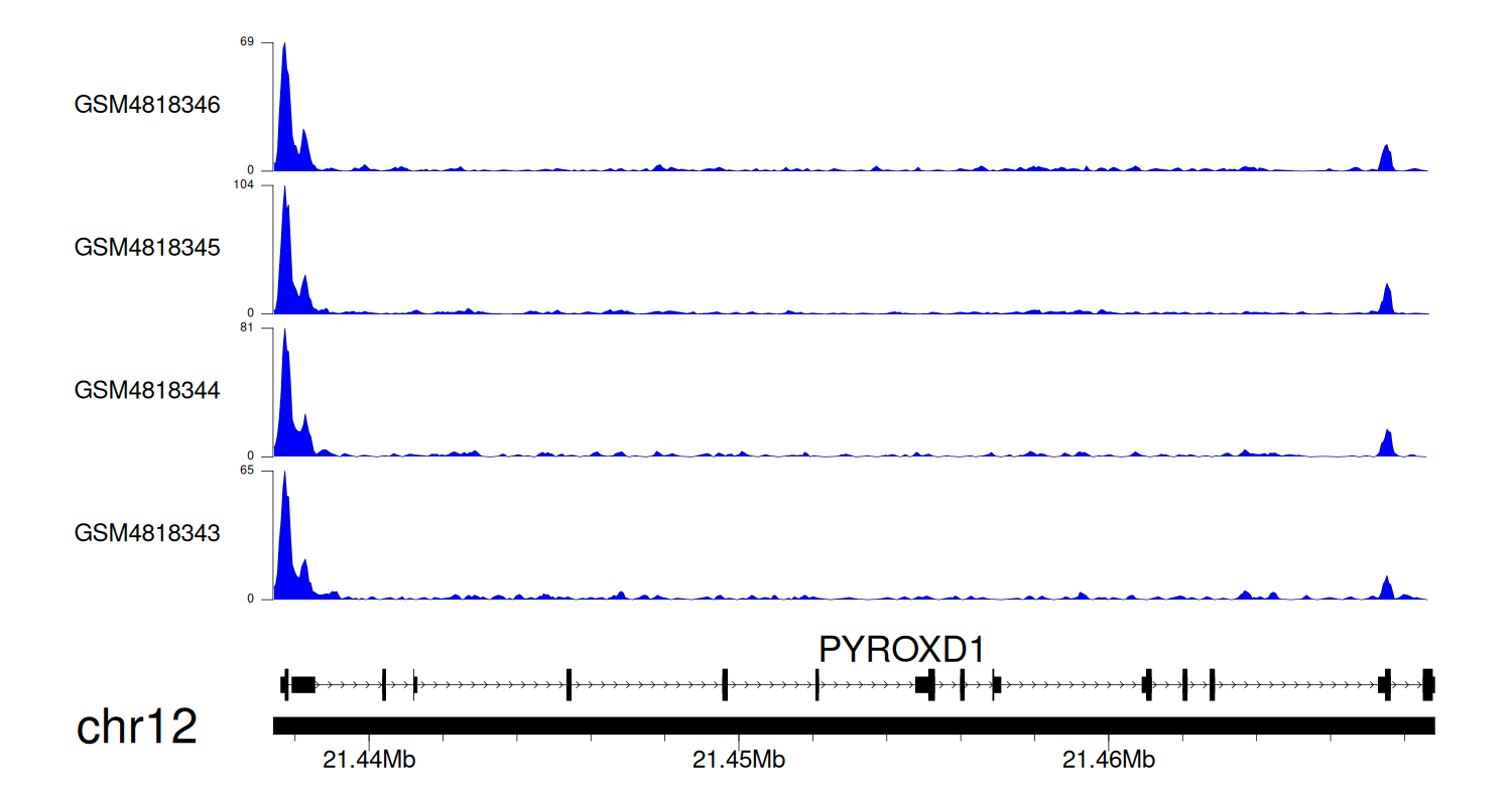 > Dataset: GSE131257 - PYROXD1 peak across samples