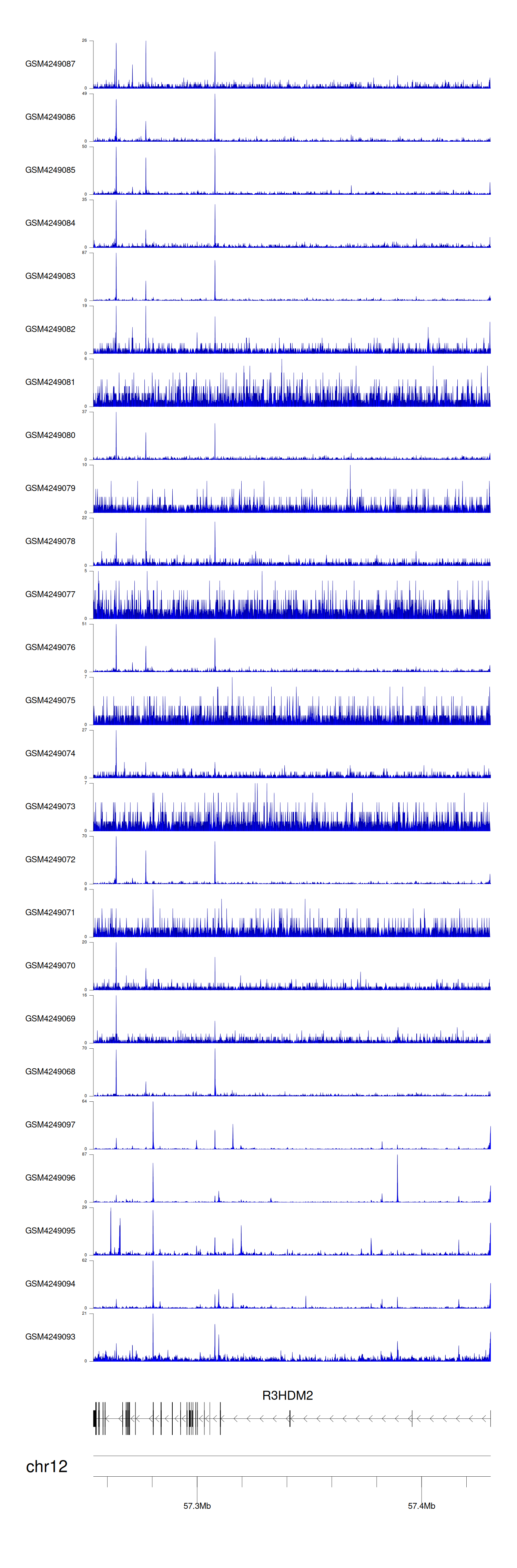 > Dataset: GSE143026 - R3HDM2 peak across samples
