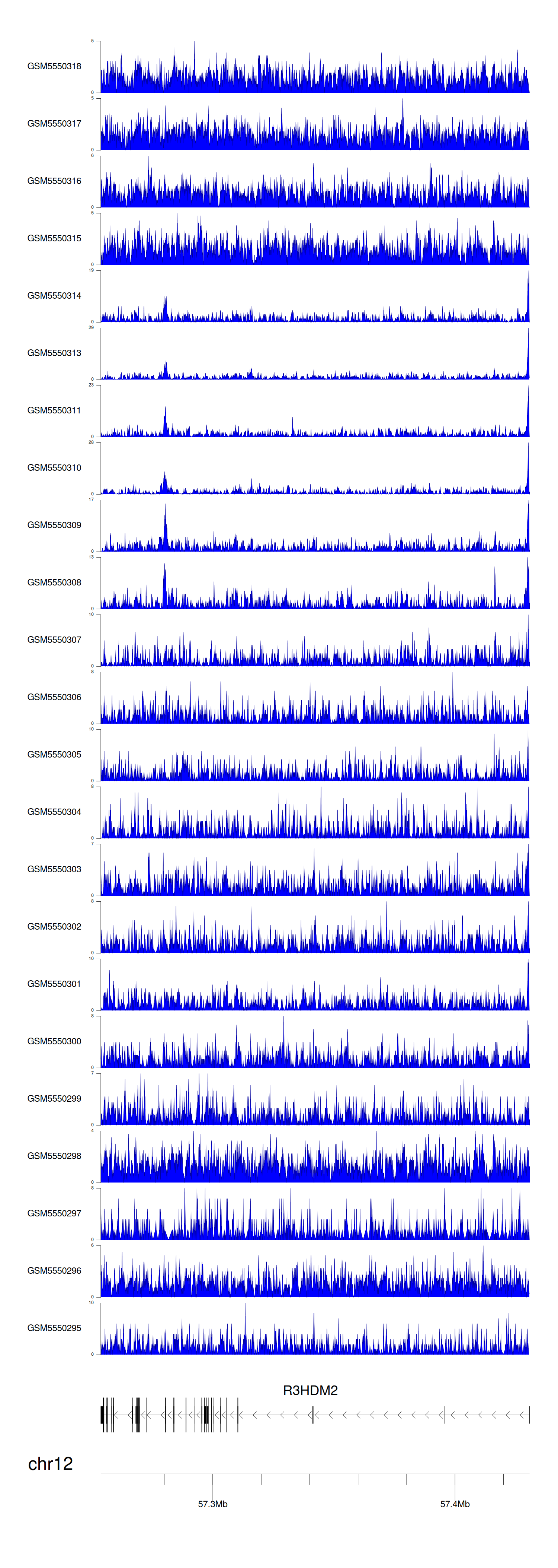 > Dataset: GSE183048 - R3HDM2 peak across samples
