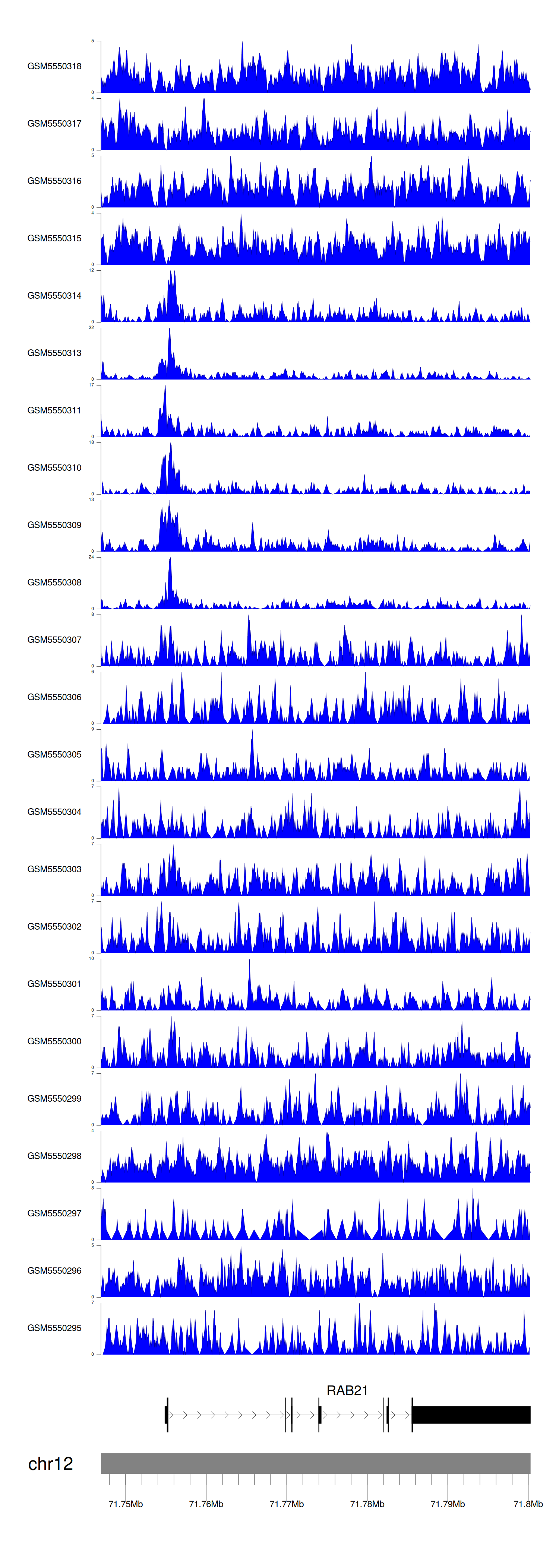 > Dataset: GSE143026 - RAB21 peak across samples