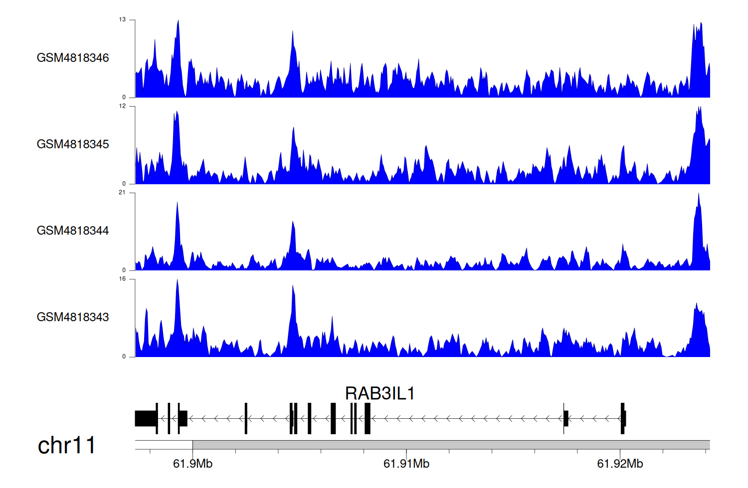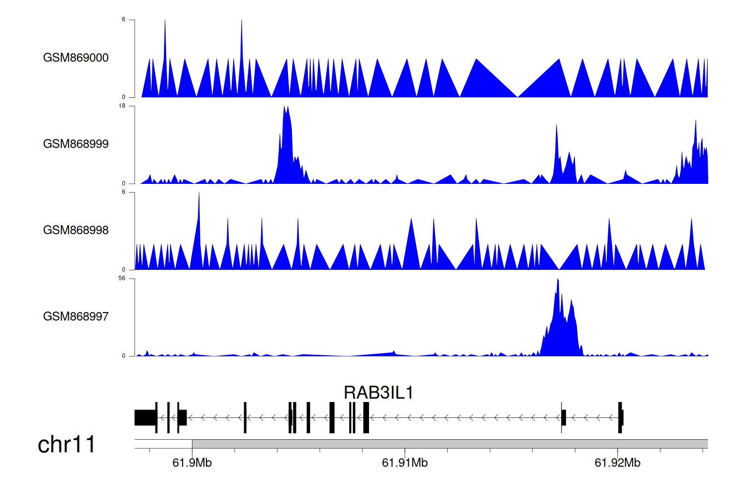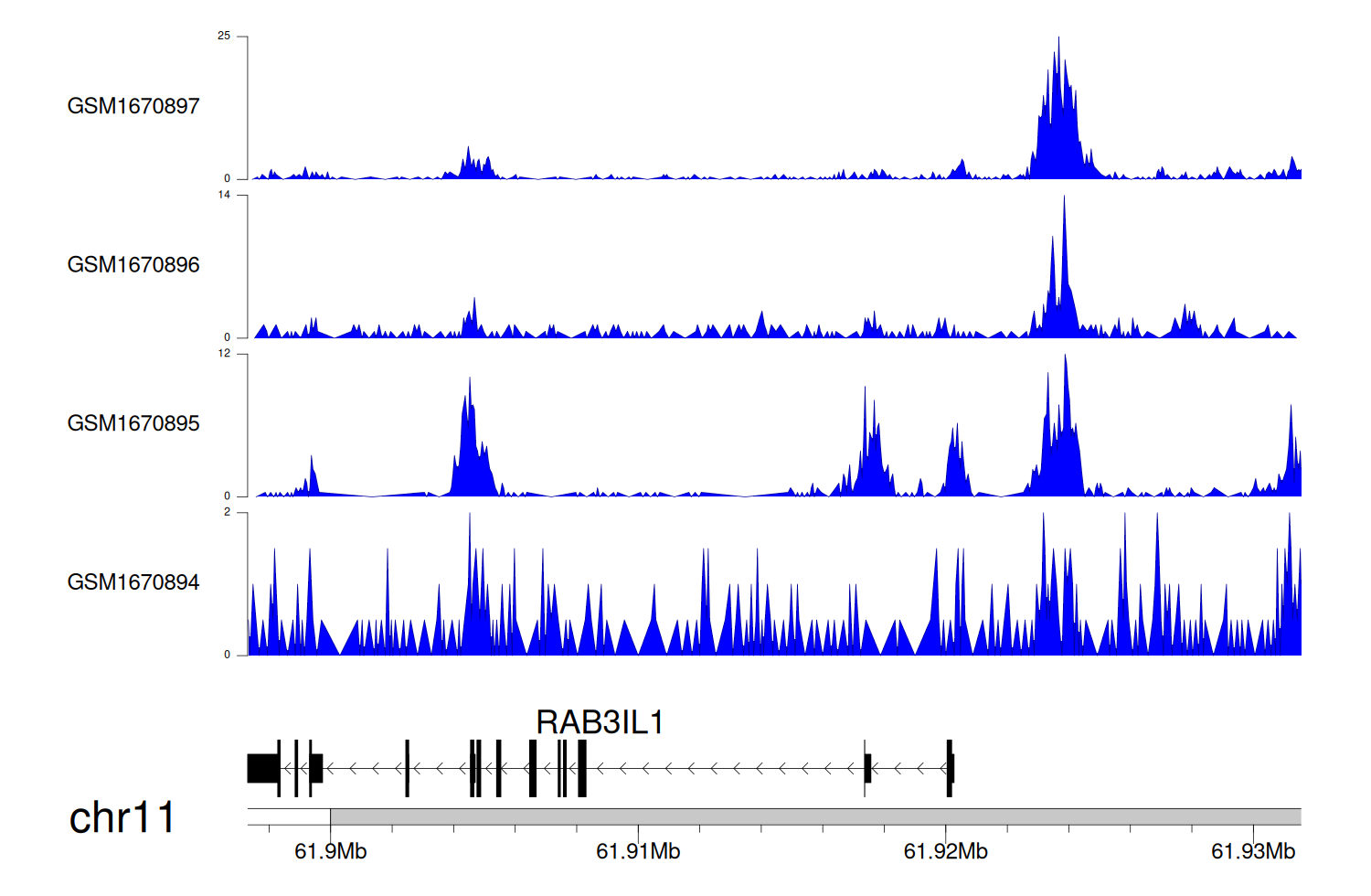 > Dataset: GSE68402 - RAB3IL1 peak across samples