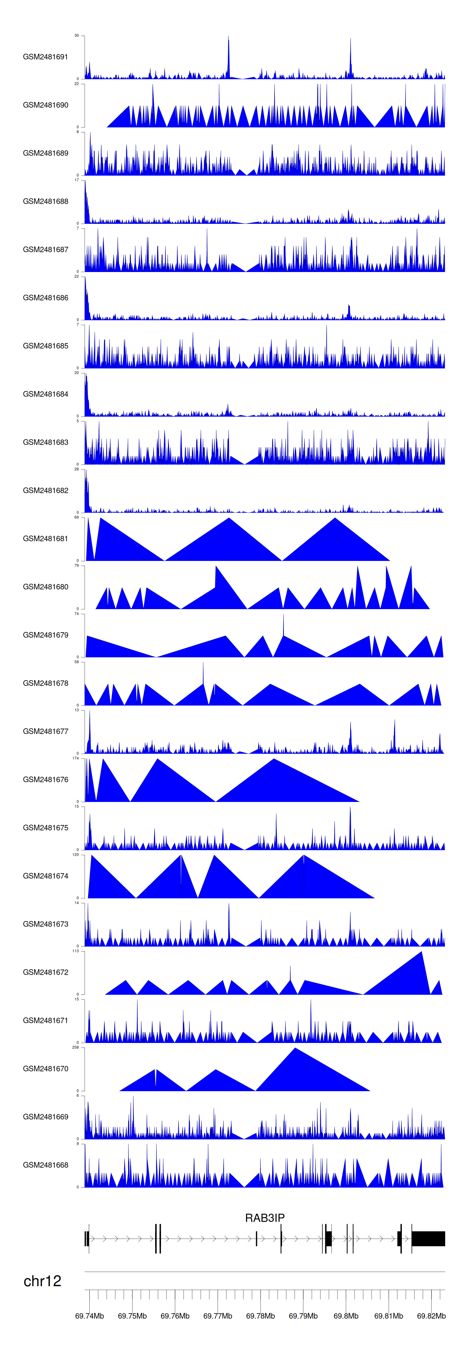 Target gene [RAB3IP] related to VISs