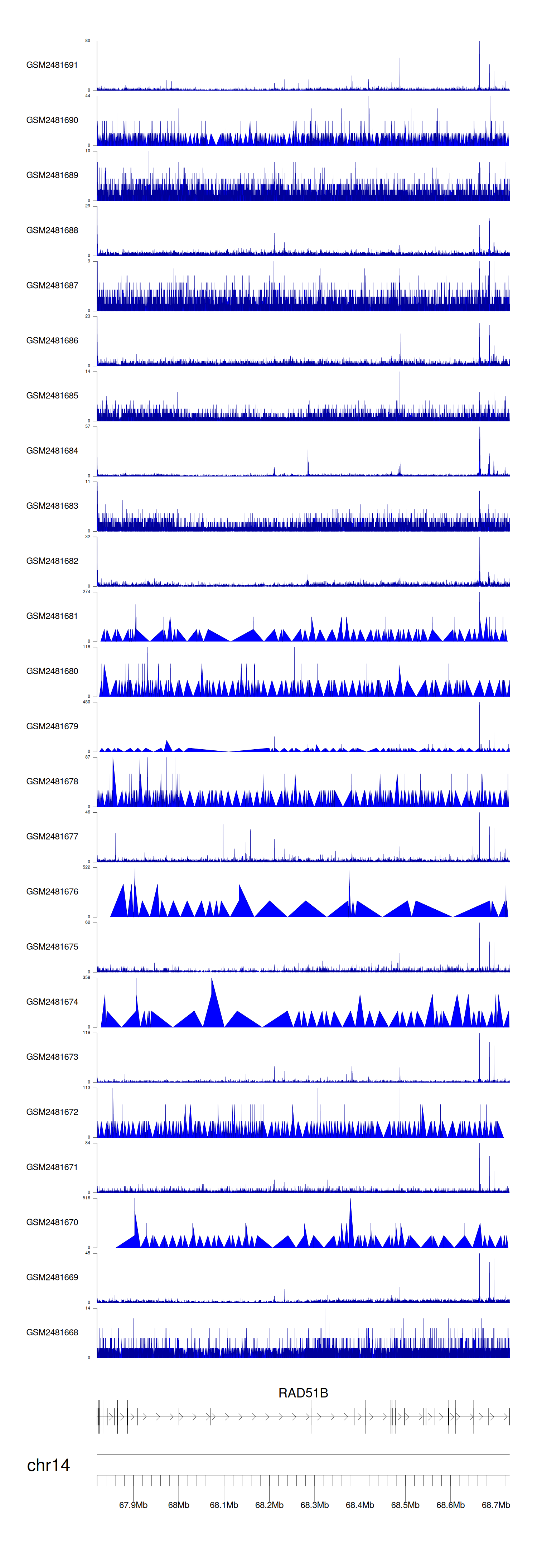 The protein encoded by this gene is a member of the RAD51 protein family. RAD51 family members are evolutionarily conserved proteins essential for DNA repair by homologous recombination. This protein has been shown to form a stable heterodimer with the family member RAD51C, which further interacts with the other family members, such as RAD51, XRCC2, and XRCC3. Overexpression of this gene was found to cause cell cycle G1 delay and cell apoptosis, which suggested a role of this protein in sensing DNA damage. Rearrangements between this locus and high mobility group AT-hook 2 (HMGA2, GeneID 8091) have been observed in uterine leiomyomata. [provided by RefSeq, Mar 2016] |