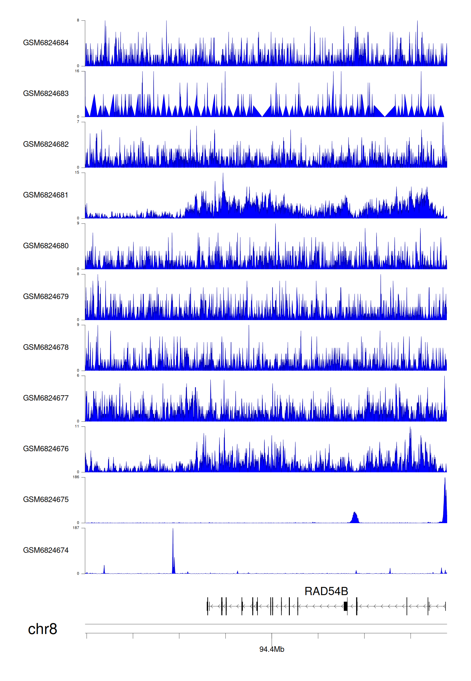 Summary The protein encoded by this gene belongs to the DEAD-like helicase superfamily. It shares similarity with Saccharomyces cerevisiae RAD54 and RDH54, both of which are involved in homologous recombination and repair of DNA. This protein binds to double-stranded DNA, and displays ATPase activity in the presence of DNA. This gene is highly expressed in testis and spleen, which suggests active roles in meiotic and mitotic recombination. Homozygous mutations of this gene were observed in primary lymphoma and colon cancer. [provided by RefSeq, Jul 2008]
